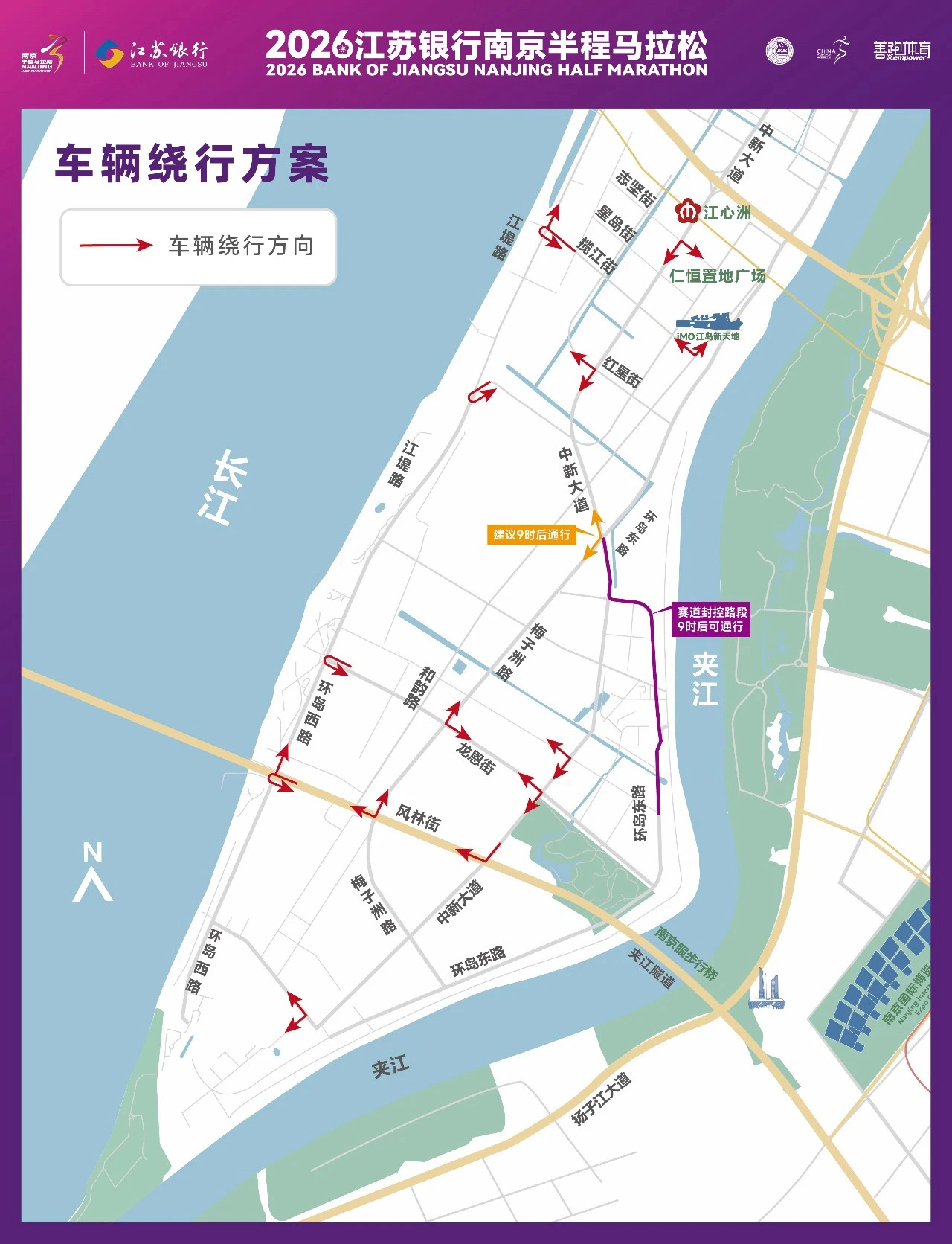 3月15日,2026南京半程马拉松赛将于上午8:00在江心洲青奥森林公园南门开跑。届时,将有1万名参赛选手参加比赛,为确保赛事活动安全顺利进行,维护道路交通安全,3月13日起对部分道路分时、分段采取临时交通管控措施。