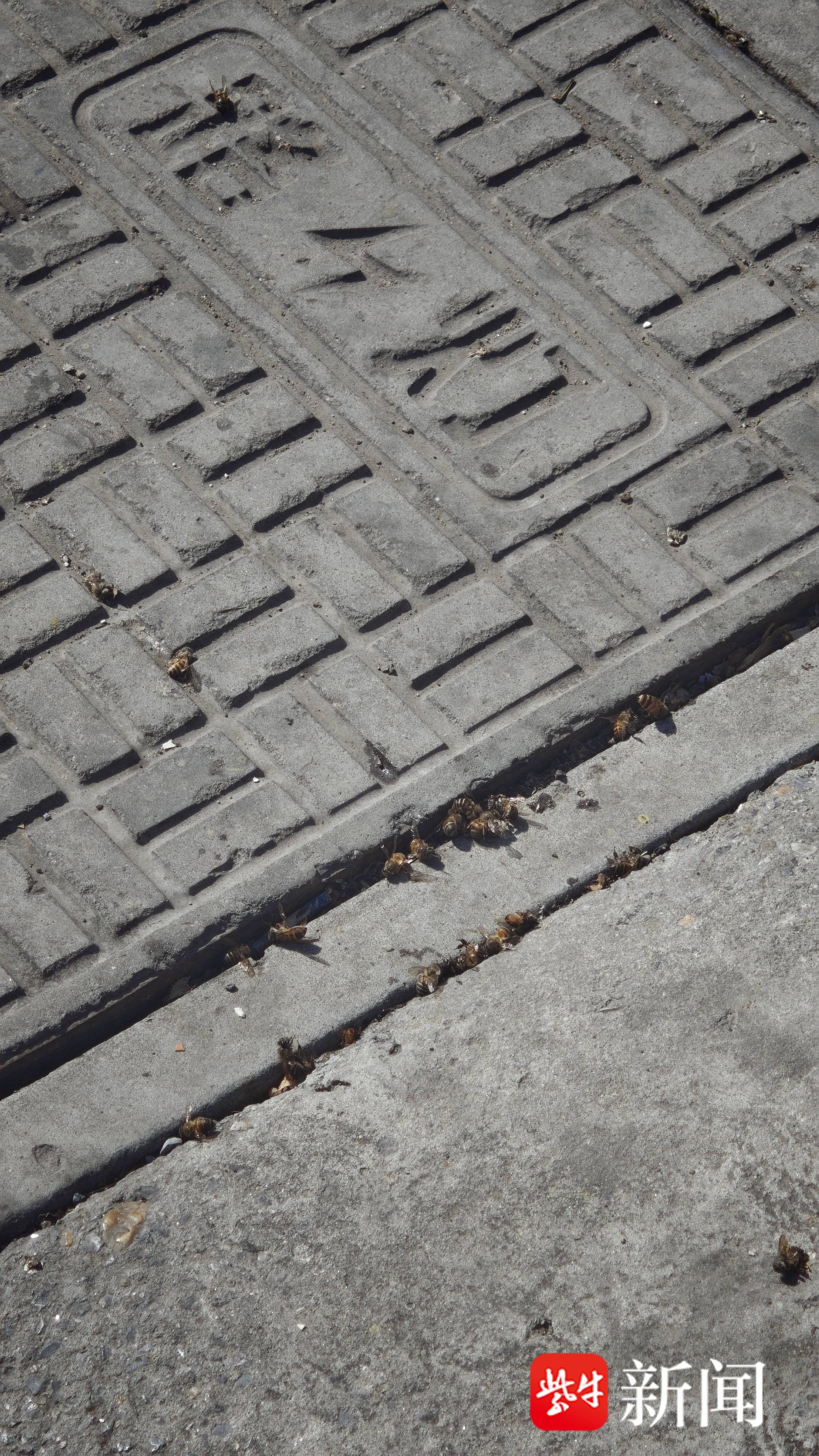 记者现场注意到,红绿灯下方的地面上仍聚集着一些蜜蜂,还有一些蜜蜂在红绿灯周围飞。就在这片“蜂拥”之地,仍有不少过往市民在红绿灯下驻足等候绿灯。随后,记者拨打110报警电话反映情况,工作人员表示将把线索同步至12345热线,请相关部门进一步核实处理。