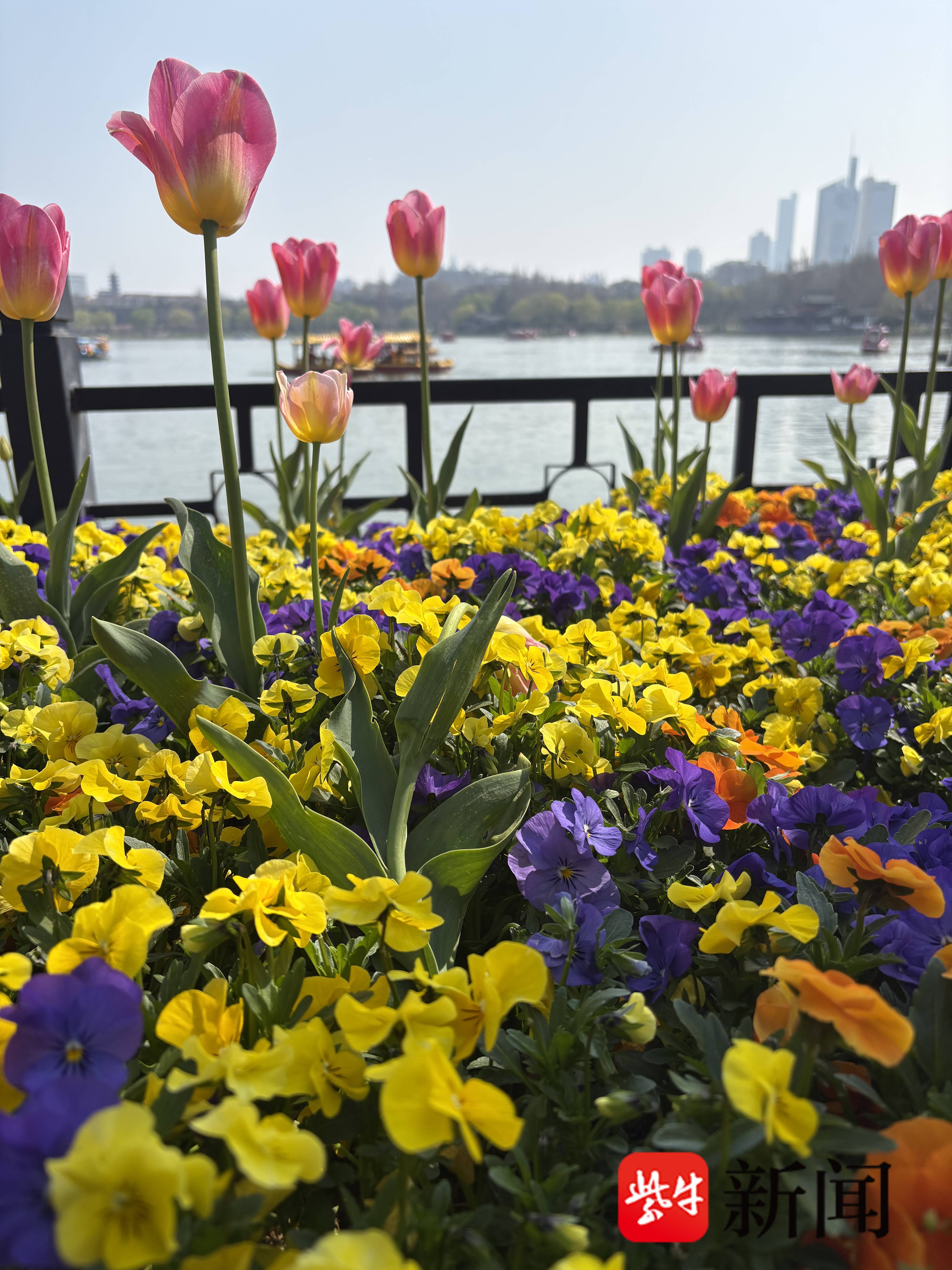 春日泛舟玄武湖,赏湖光山色,别有一番乐趣。记者进入玄武门后看到,两侧的湖面上五颜六色的船只点缀在其中,与岸边的花海、远处的紫金山构成一幅灵动的春日画卷。