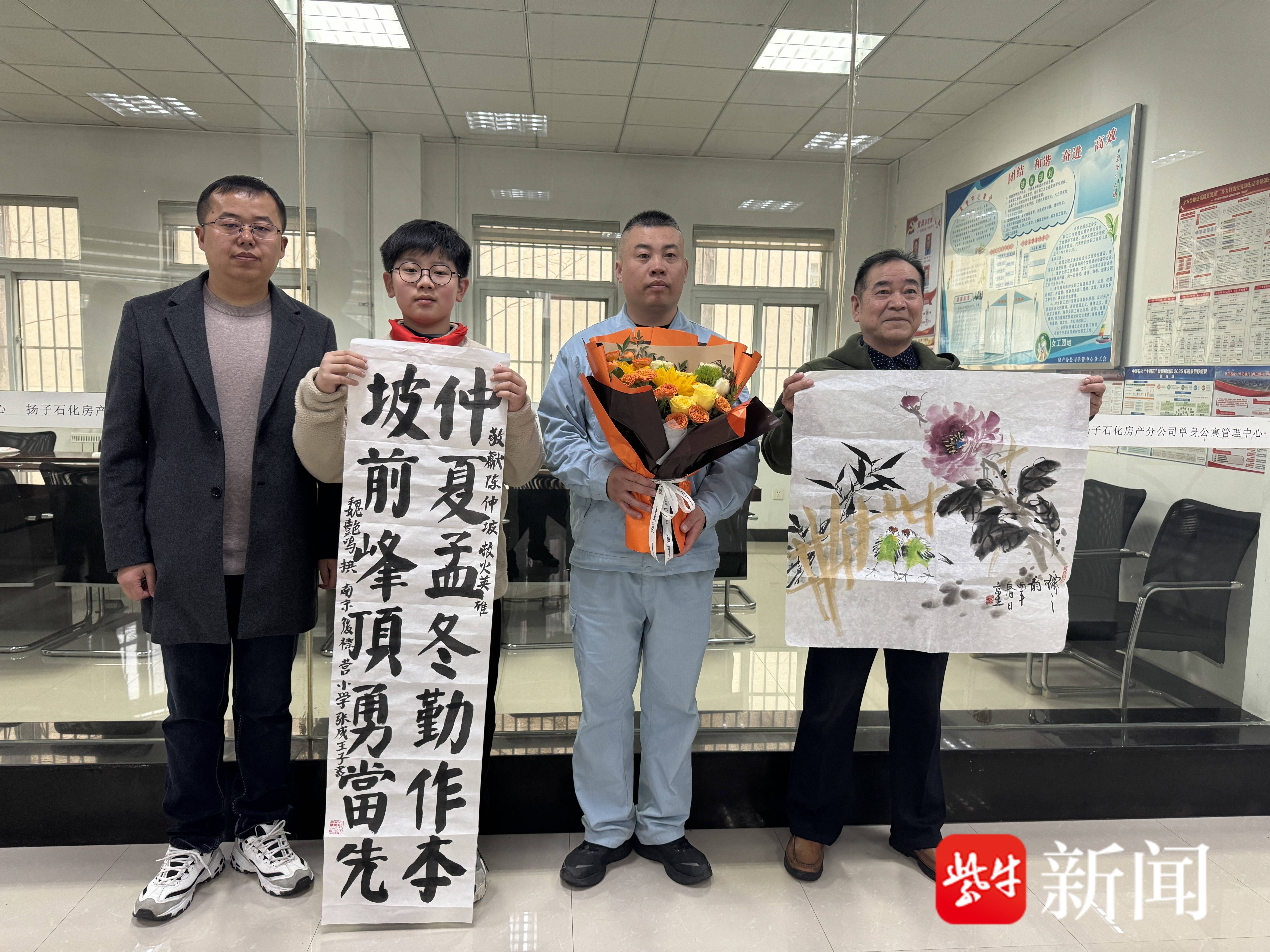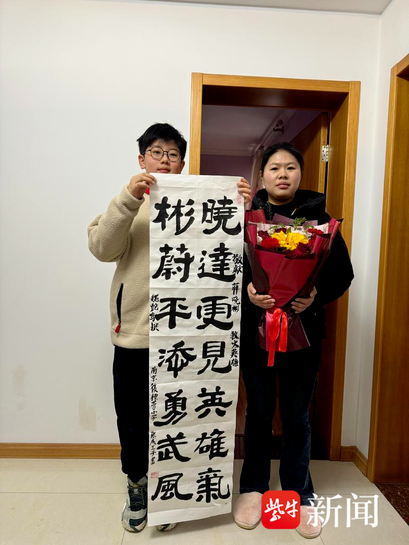 扬子晚报网3月16日讯(通讯员 周剑彪 王梅 记者 闫春旭)3月16日上午,江苏省南京江北新区双拥办携手南京沙漠拥军书画院负责人沙漠与南京后标营小学小军娃张成王子一同走进救火英雄单位或家中,将饱含心意的书画作品送给救火老兵陈仲坡和现役军人薛晓彬。两次救火的英雄行为感动了军营内外,市民群众用笔墨致敬无畏担当,以行动传递拥军温情。