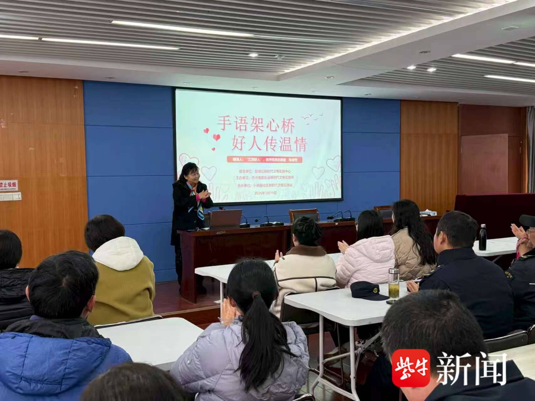 “学习手语,我们社区工作者就能多一双‘耳朵’,多一双‘手’,去倾听那些无声的呼唤,让服务更有温度,也更有精度。”这是朱俊芳最朴素的愿望,也是热河南路街道的一次暖心探索,用指尖传递善意,在无声的交流中搭建起心灵的沟通桥梁。同时通过邀请 “身边好人” 走进课堂,把 “好人精神” 转化为基层治理的强大动力,在辖区营造出包容互助、温暖和谐的文明新风尚。  通讯员  佘芮彦  扬子晚报/紫牛新闻记者 薛玲
