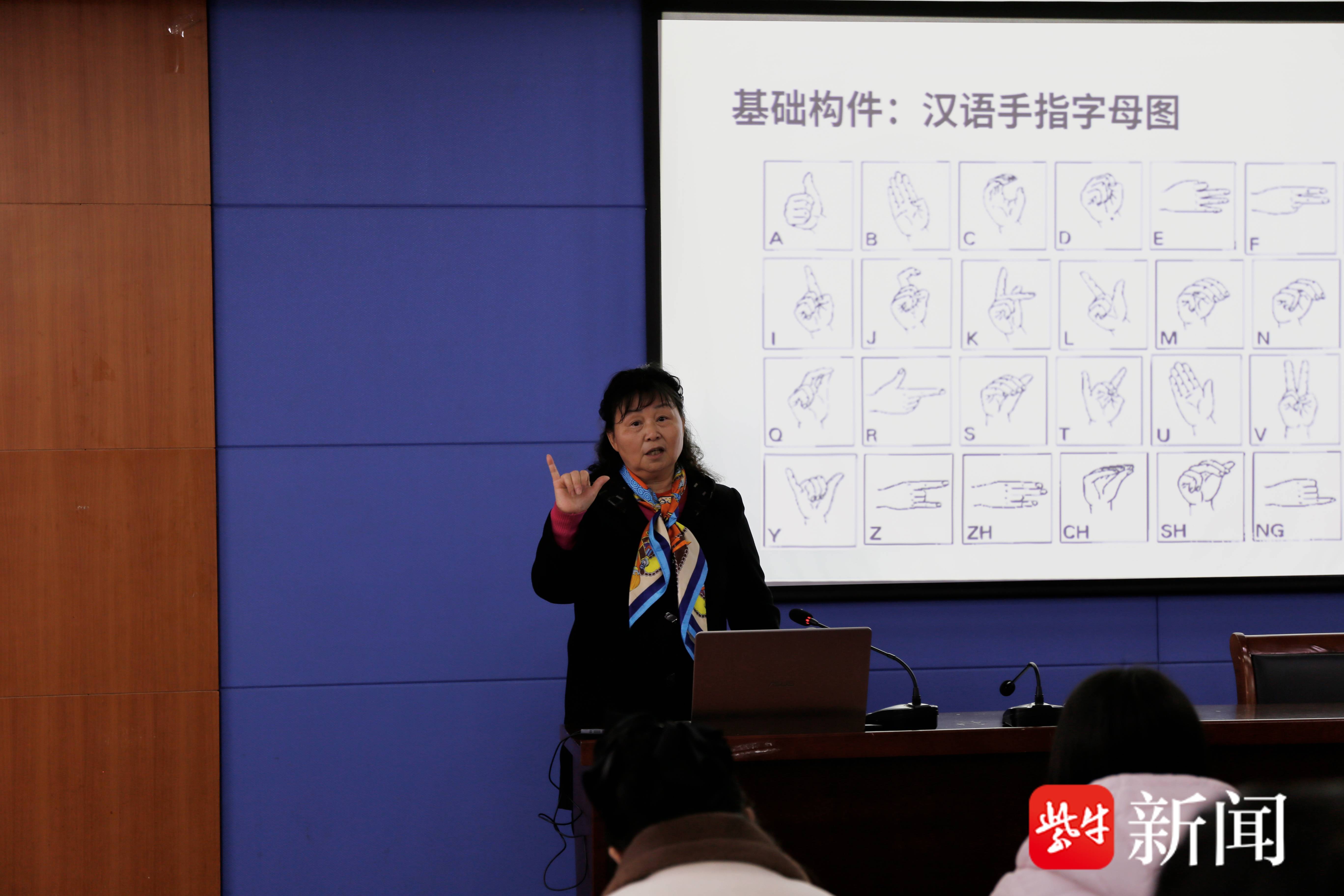 朱俊芳在教授手语