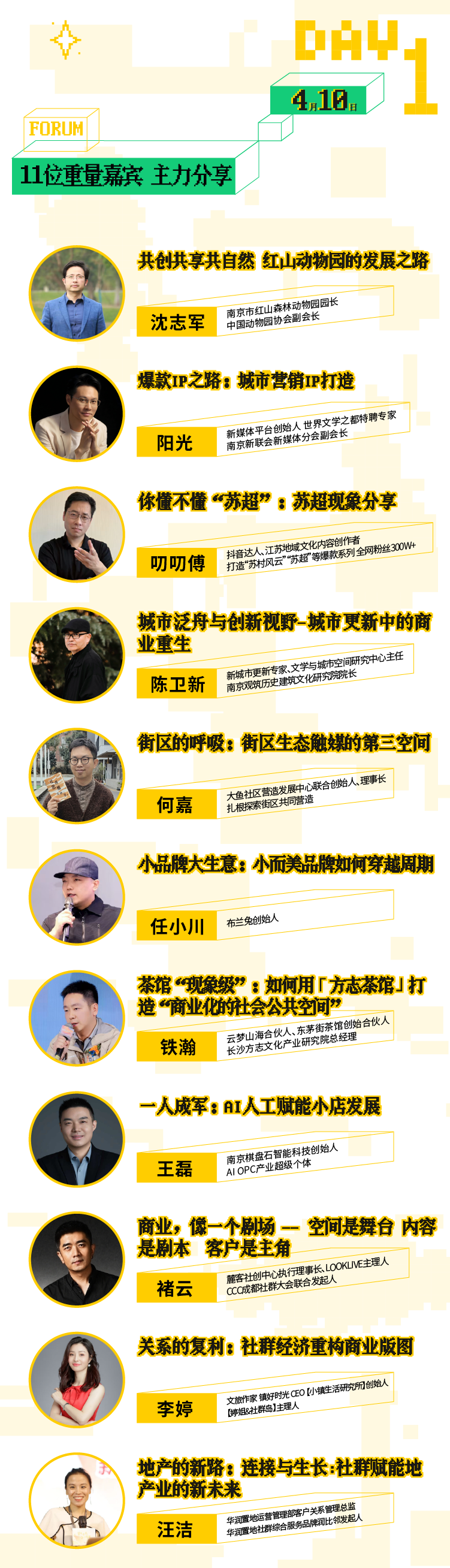 ○这是一场商业人的盛会,更是一场思想的盛宴。在主力分享环节,11位重量级嘉宾将围绕“红山动物园的发展之路”“小而美品牌穿越周期”“地域文化IP打造”“苏超现象”等主题展开深度对话。