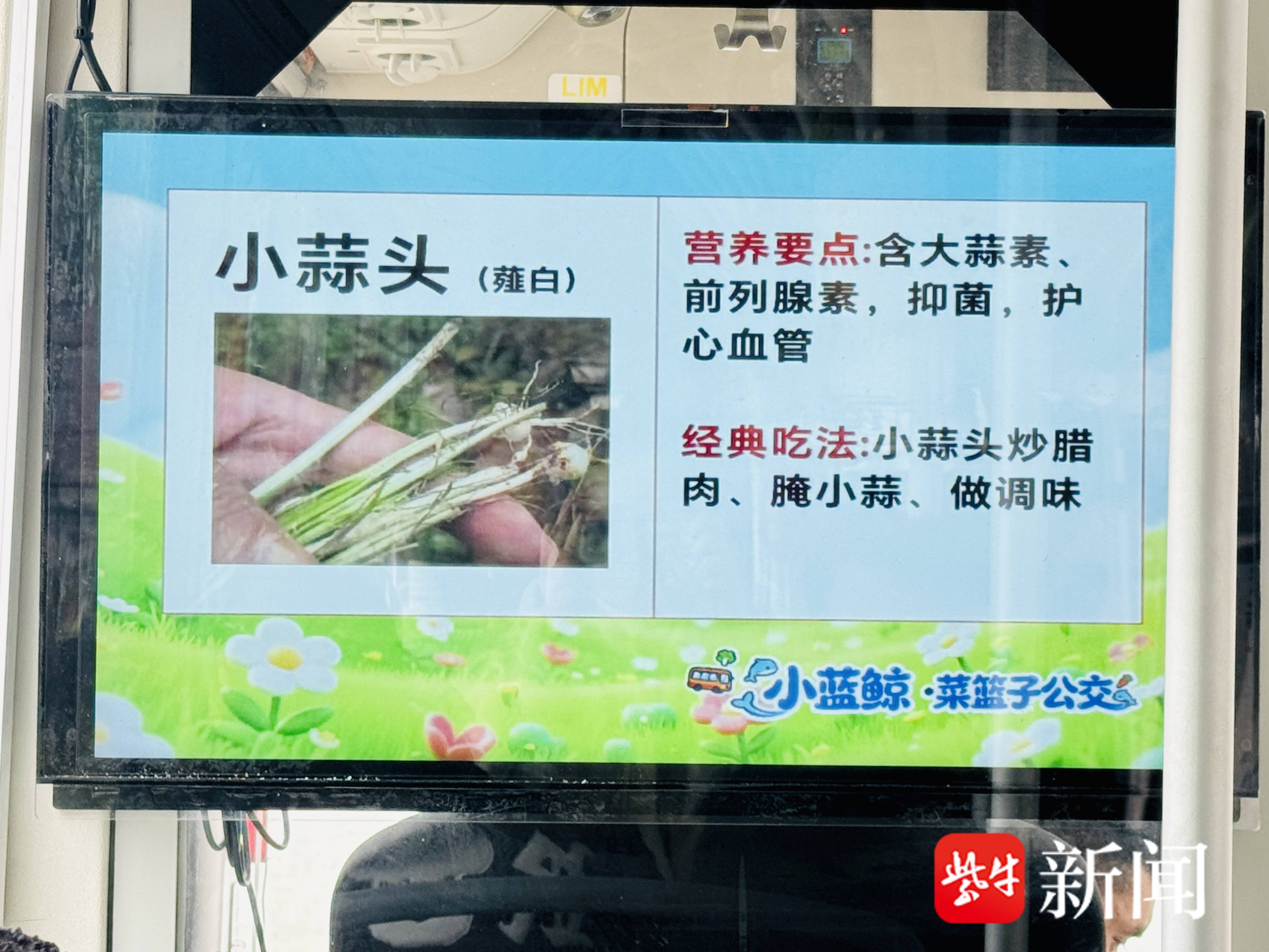 活动现场,装饰一新的55路“菜篮子”公交车上线运营。车厢内悬挂着南京人钟爱的马兰头、香椿头、菊花脑等春菜卡片,详细标注每种春菜的养生功效与经典烹饪方法,让公交车成为“行走的春菜科普馆”。乘客在前往麒麟天旺农贸市场的途中,便可沉浸式感受春日气息与金陵饮食文化魅力。