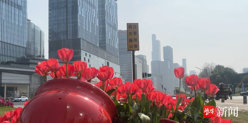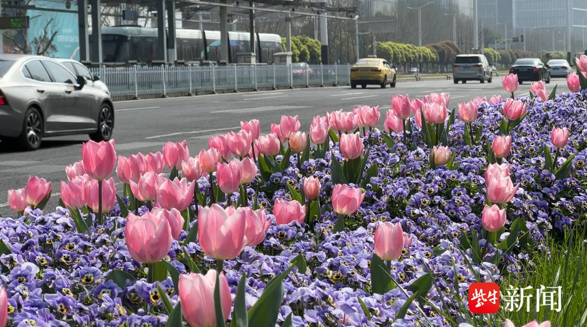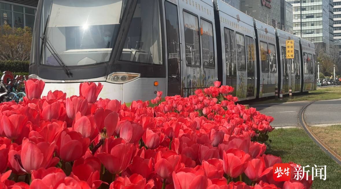 视频 | 有轨电车驶过郁金香花海 南京河西绿化带美出新高度