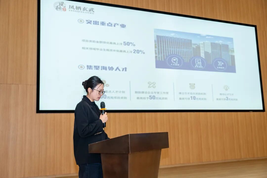 活动现场,详细解读了玄武区最新人才政策2.0版。新政围绕“精准引才、精心育才、大胆用才、暖心留才”四大核心举措,为青年人才提供从创业资助到生活补贴的全方位支持,最高可给予1亿元综合资助,新就业高校毕业生可获最高10万元生活补贴及7.2万元租房补贴,以真金白银的诚意助力人才留在南京、创在玄武。