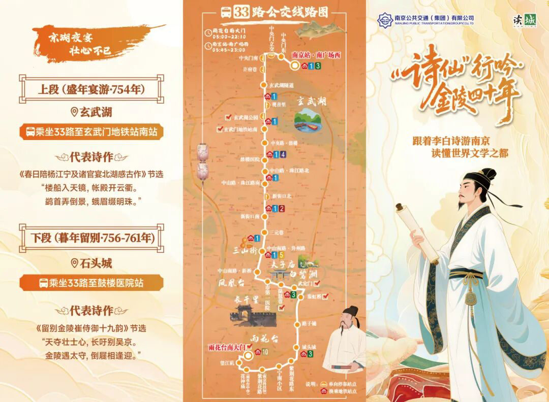 走!坐上“金陵文脉”主题公交跟着“李白”品读南京