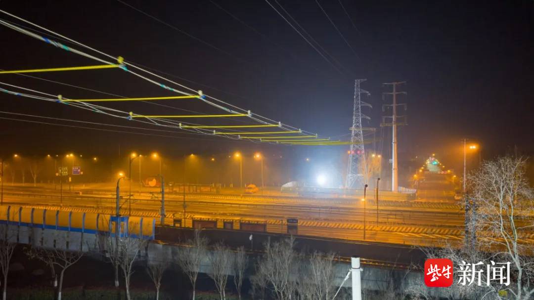 凌晨3时30分,最后一个卡扣固定完成,经过晃动、复测承力索张力、核对安全距离,弧形的承力防护空间最终形成,将施工区段与下方的地铁接触网、江北大道路面彻底隔离开来。