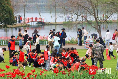 扬子晚报网4月1日讯(通讯员 徐福庚 记者 闫春旭)4月1日,南京中山植物园迎来春假游客高峰,不少小学生和幼儿园小朋友在老师带领下开展春季研学活动。园区内樱花、郁金香等正值盛花期,成为孩子们亲近自然、观察植物生长的生动课堂。园区也加强了导览服务与安全引导,保障学生团队有序游览。
