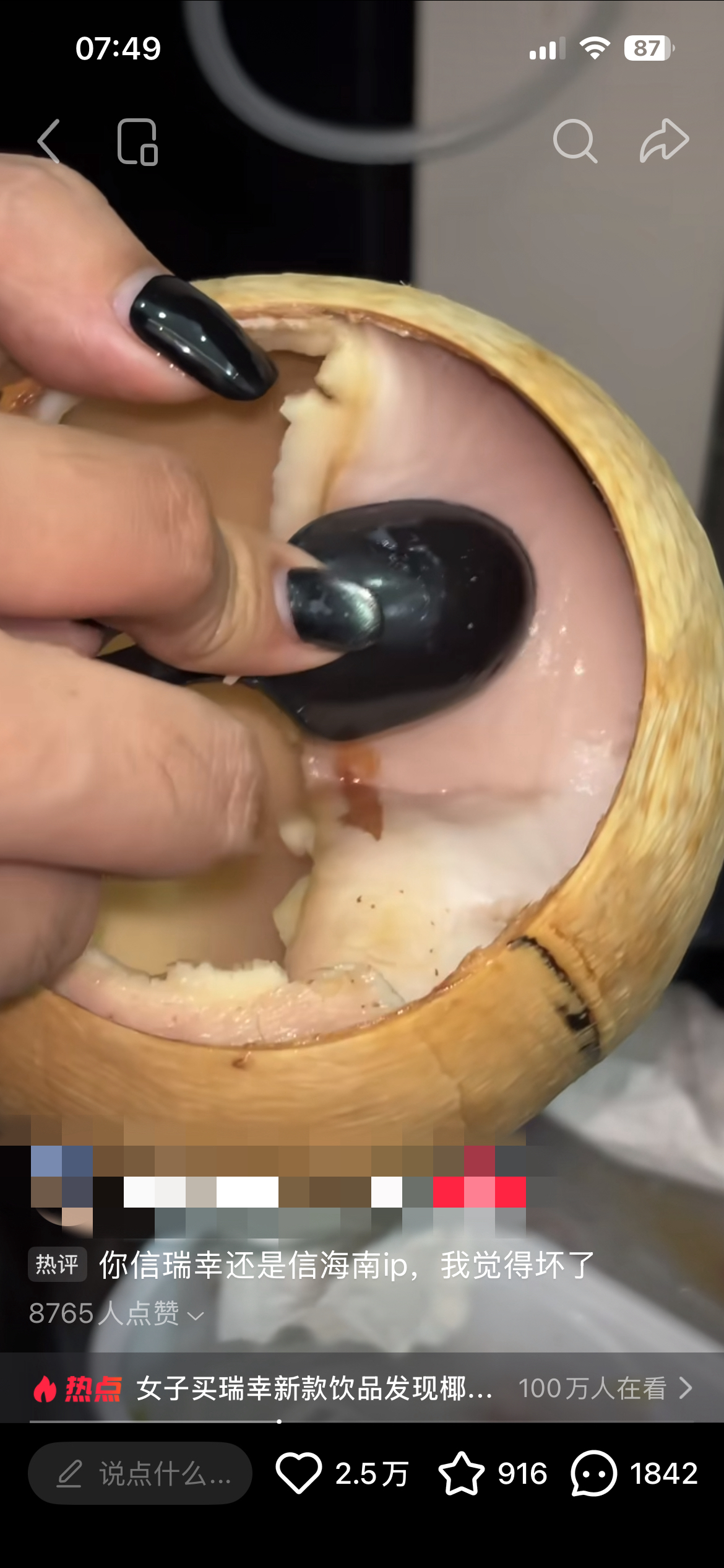 网友购买瑞幸新品发现椰肉发紫