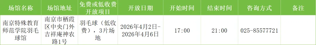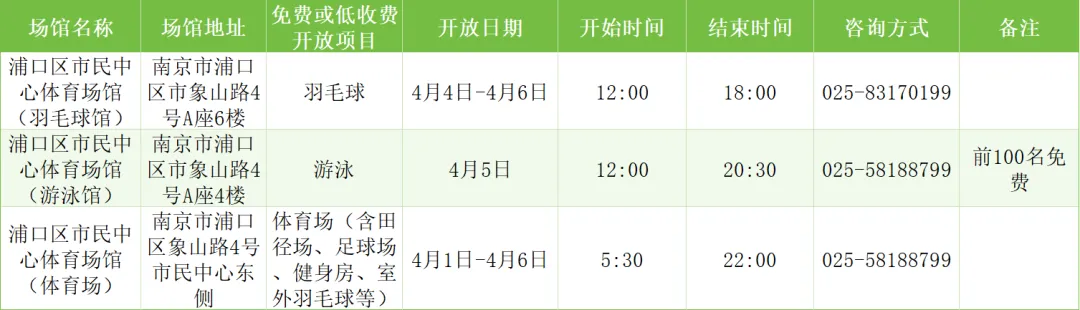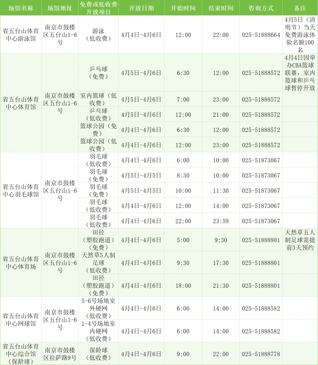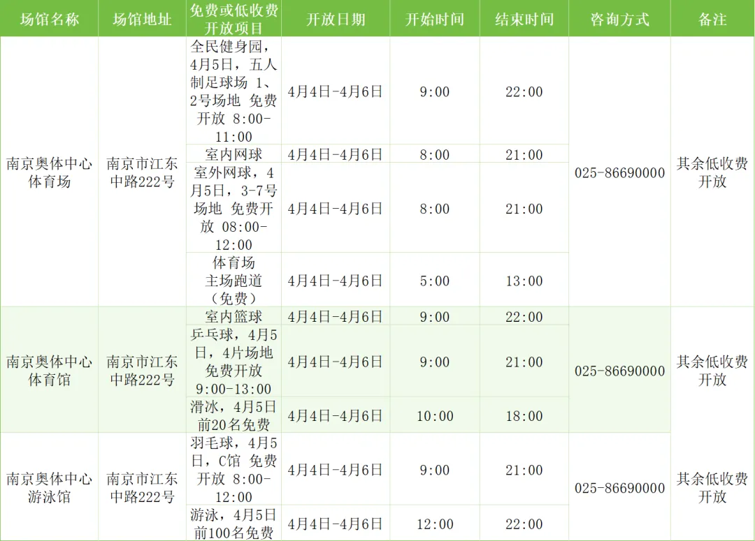 为迎接2026年春假及清明节假期到来,积极响应全民健身号召,进一步满足广大市民及中小学生节假日期间体育健身需求,营造健康祥和的节日氛围,我市各主要大型公共场馆将在假期推行低收费或免费开放(简称“低免开放”)的惠民政策,让市民在春光中享受运动乐趣,助力健康南京建设。