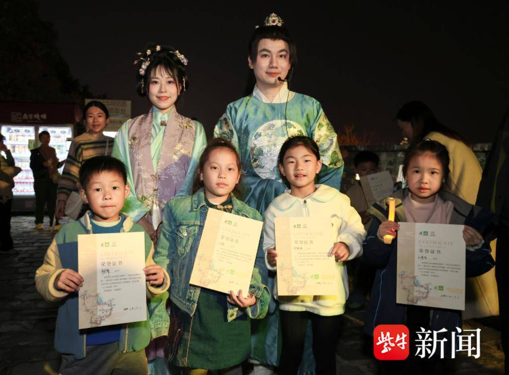 “平时白天带孩子来过城墙,但晚上提着灯笼边走边学,感觉完全不一样。”参与活动的家长李女士告诉记者,这种“可读、可感、可互动”的方式,让沉睡的历史在夜色中“开口说话”。活动最后,孩子们在灯笼光影中拍摄了大合影,并领取了“小小知世郎”证书。主办方表示,未来将继续探索更多夜间文化体验场景,为市民和游客带来更多的金陵文化体验。