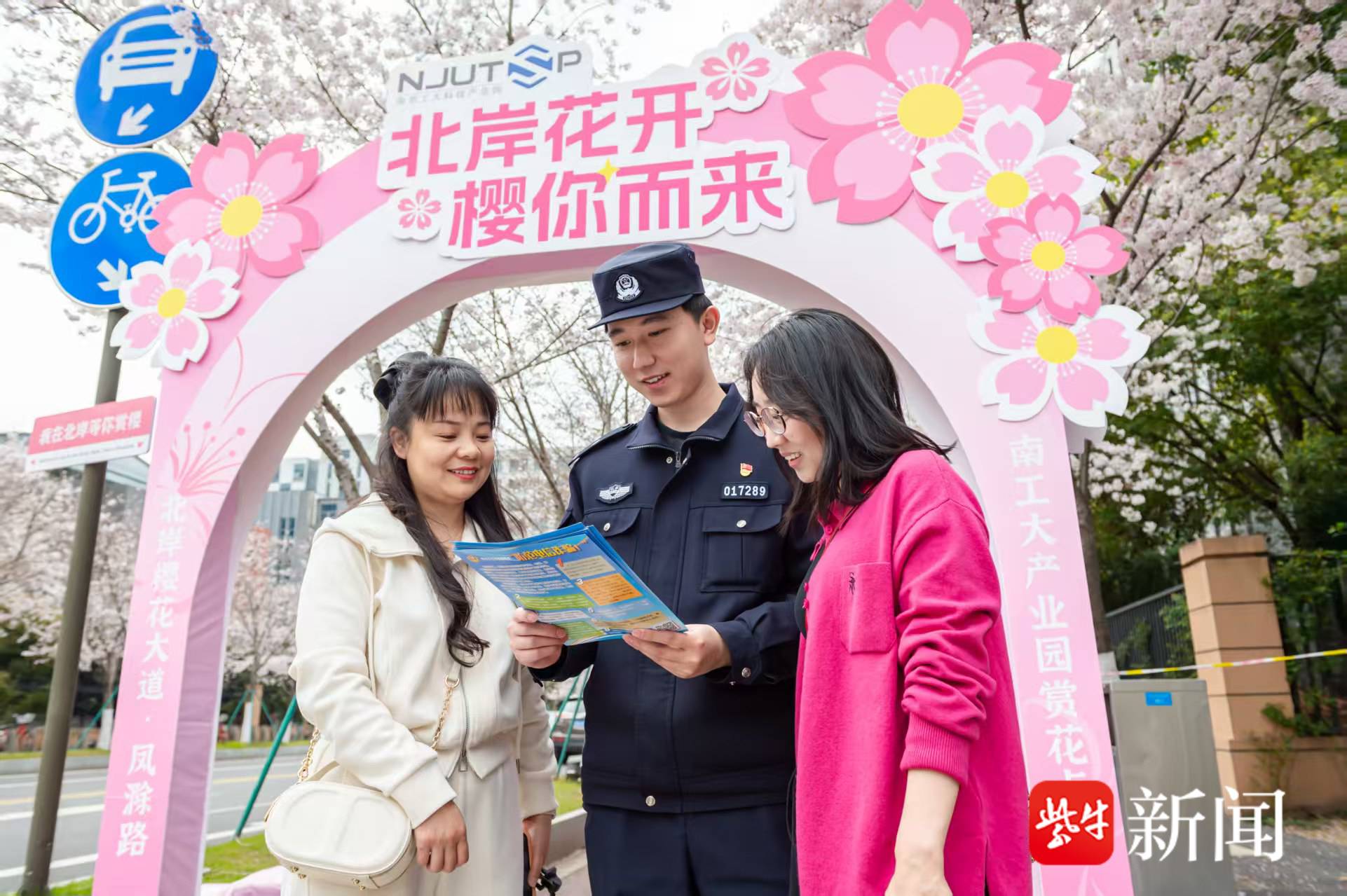 扬子晚报网4月2日讯 (通讯员 江景轩 记者 任国勇)南京市公安局南京江北新区分局顶山派出所“00”反诈先锋队3月27日将反诈讲堂“搬”至凤滁路樱花大道,向赏花的市民游客普及电信网络诈骗的常见类型与作案手法,让反诈知识伴着花香浸润人心。