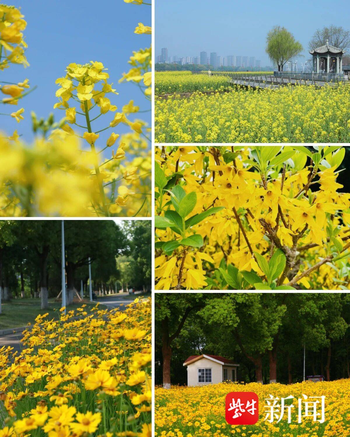 南京眼旅游区金灿灿的油菜花田正开得灿烂 南京滨江公园供图