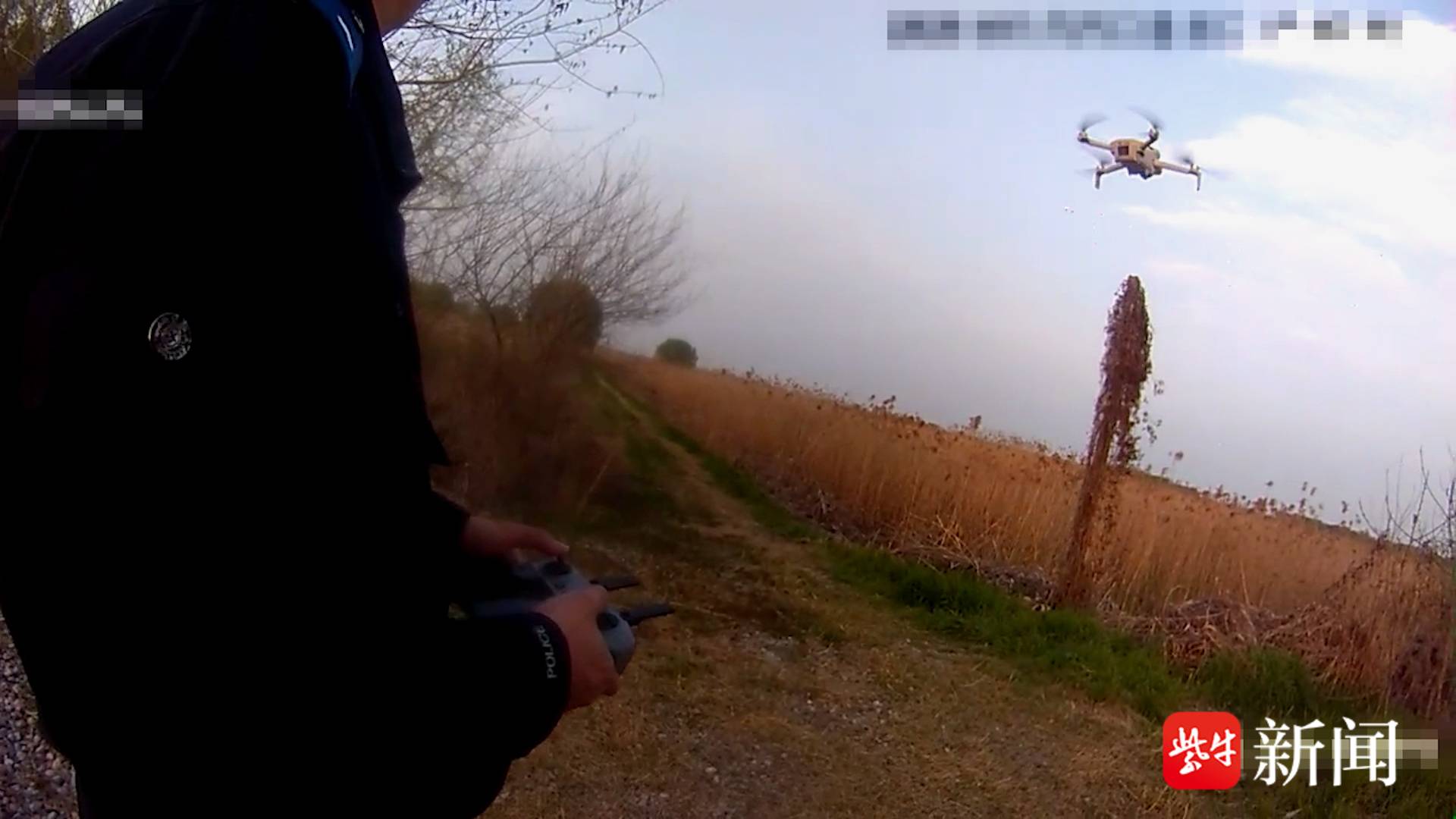 民警利用无人机在芦苇荡上空扫描