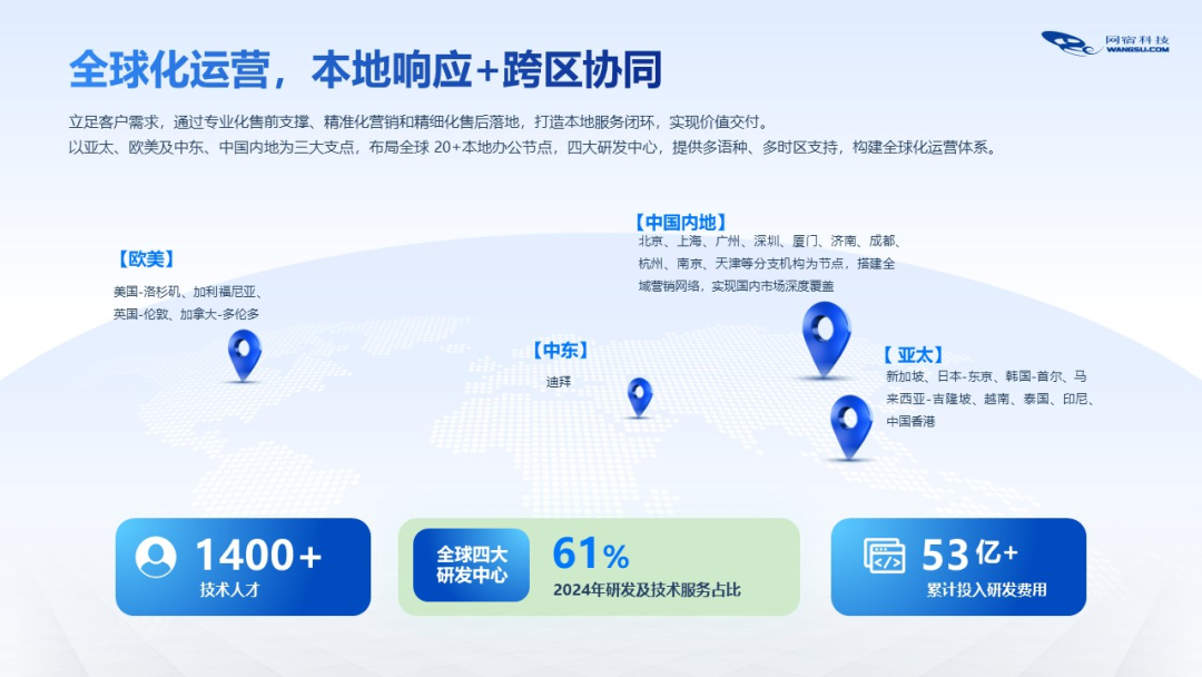 公司聚焦边缘智能、CDN及安全领域,帮助企业技术创新实践,是产业数智化转型升级值得信赖的合作伙伴。公司始终致力于提升终端用户互联网体验,业务遍及全球90多个国家和地区,满足用户随时随地、安全、可靠的数据处理及交互需求。