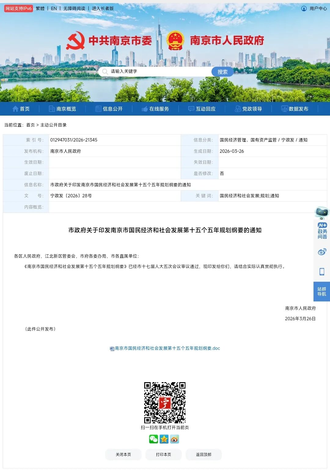 查看南京市“十五五”规划纲要全文