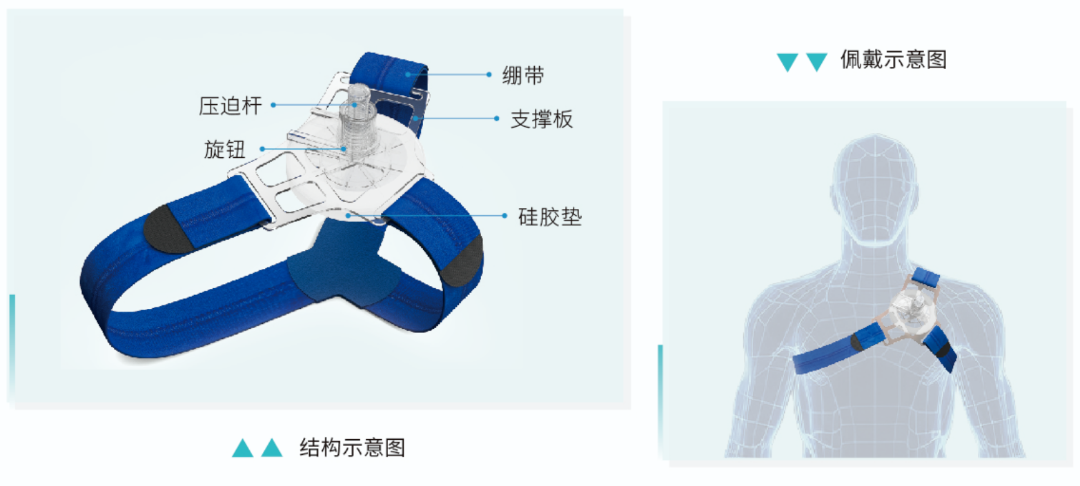 友德邦这款“囊袋压迫止血器”,专门用于起搏器和ICD术后的囊袋压迫止血,采用绷带式穿戴结构,医护人员只需简单几步即可完成固定。