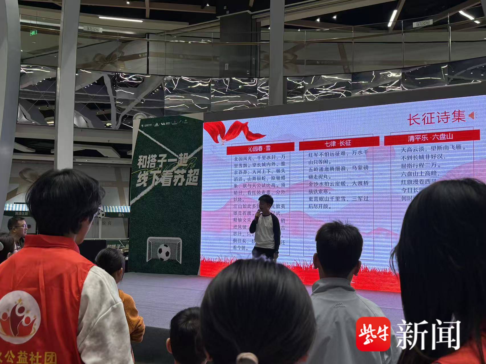为迎接世界读书日、纪念中国工农红军长征胜利80周年,4月11日,一场融合红色教育与生态守护的青少年主题活动在南京金鹰世界七楼中庭举行。本次活动以“地球再生诗会·童心守护计划”暨“重走长征绿途”红色生态特别行动为主题,吸引近百名青少年及家庭参与。