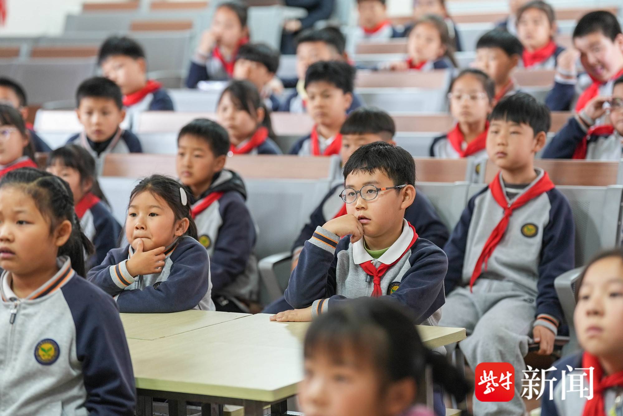 图为孩子们认真听讲和思考