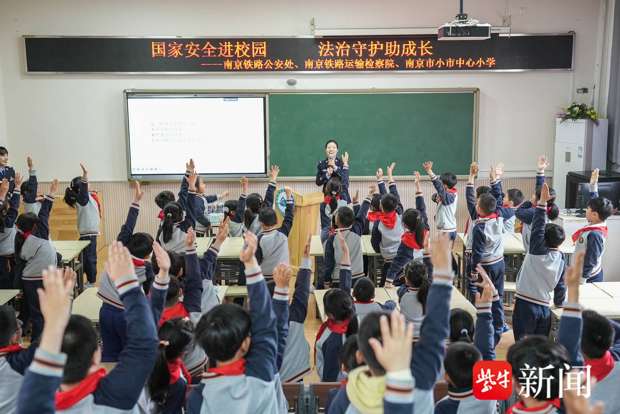 扬子晚报网4月14日讯(通讯员 卞亚穹 张越 记者 梅建明)在第十一个全民国家安全教育日即将到来之际,南京铁路公安处与南京铁路运输检察院携手走进南京市小市中心小学,为该校部分师生带来一堂别开生面的安全宣讲课。据介绍,此次活动以“普法护苗”为主题,深度融合国家安全教育与铁路安全防护,旨在通过生动活泼的互动形式,增强小学生的国家安全意识与爱路护路观念,让安全理念根植童心,护航未成年人健康成长。