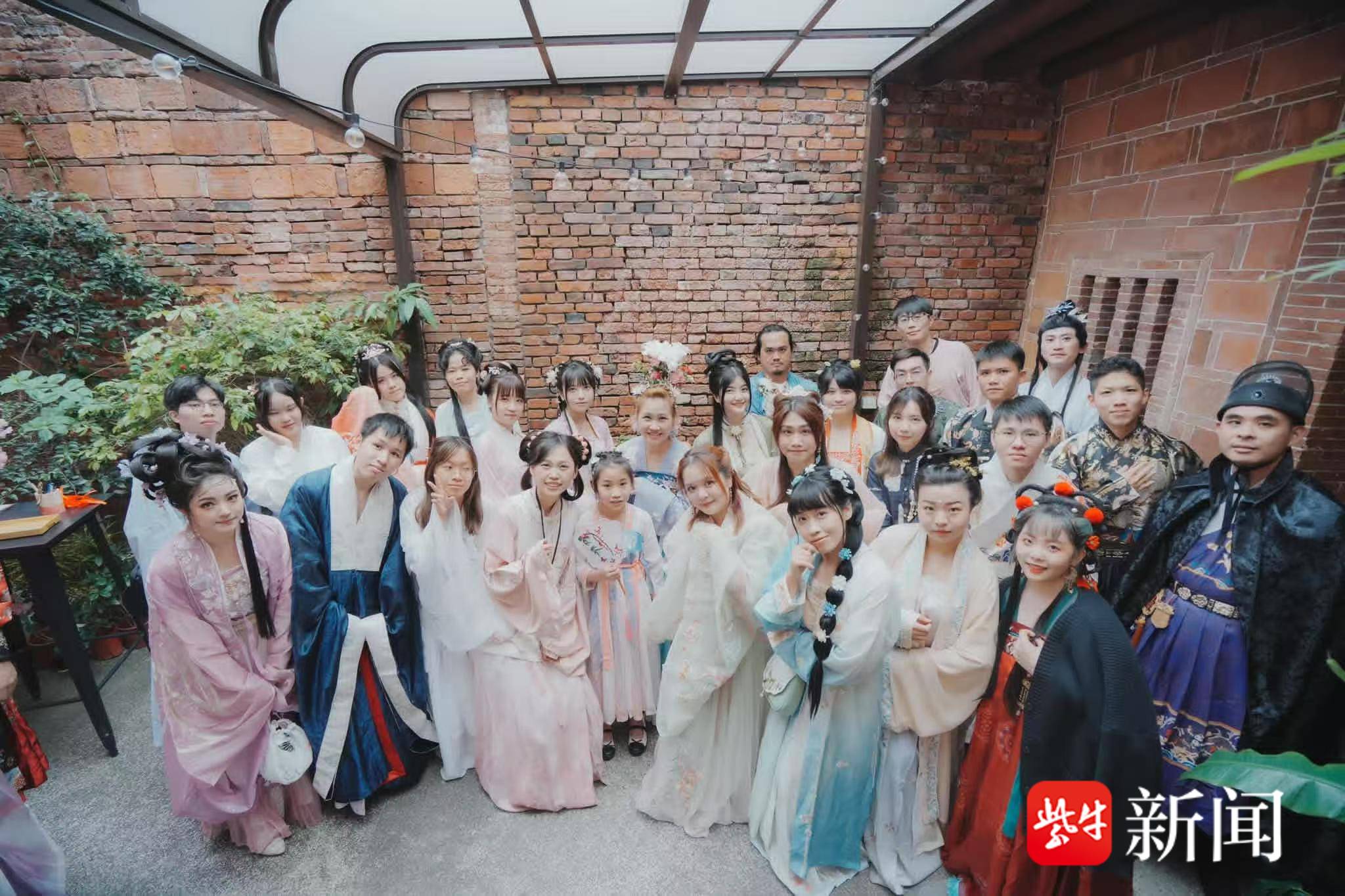 宁台青年创意市集在夫子庙开集啦!有位台青穿着汉服来摆摊