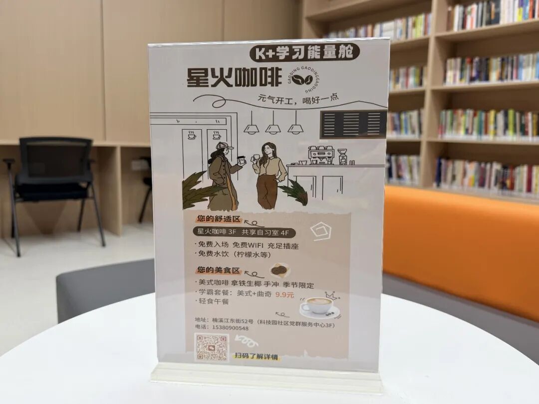 ○ 在社区4楼共享自习室研读的青年,学习累了,可以秒提一杯提神醒脑的咖啡,在知识的海洋里自在徜徉;社区周边的“大厂”员工,工作疲了,可以来品尝一杯让自己“慢下来”的咖啡,再和主理人唠嗑几句,享受悠闲时光。