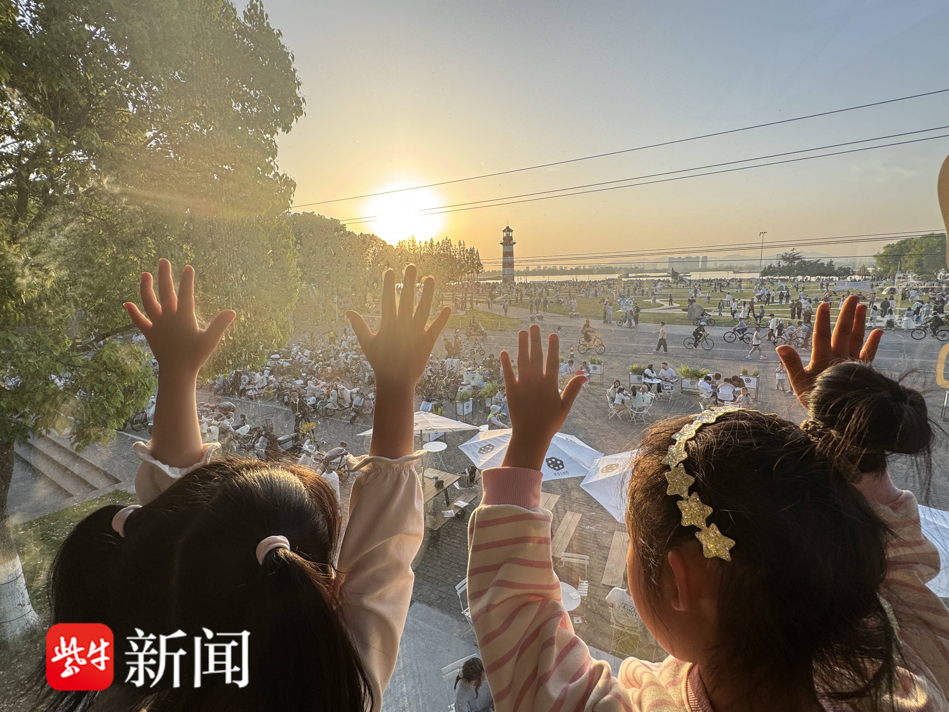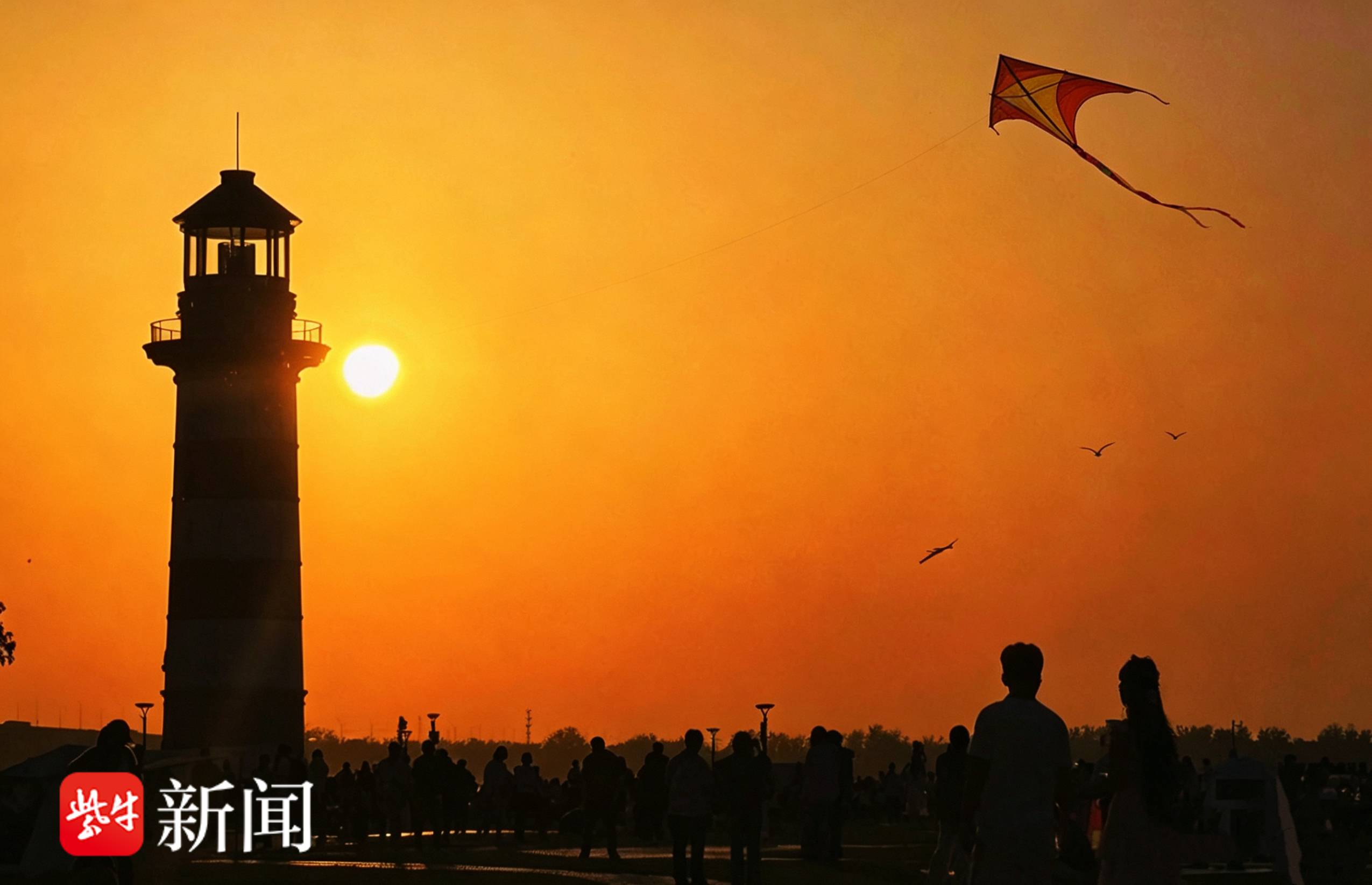扬子晚报紫牛新闻记者傍晚6:20在鱼嘴湿地公园看到,众多市民争相观看美丽的夕阳余晖。扬子晚报/紫牛新闻记者 范晓林 摄