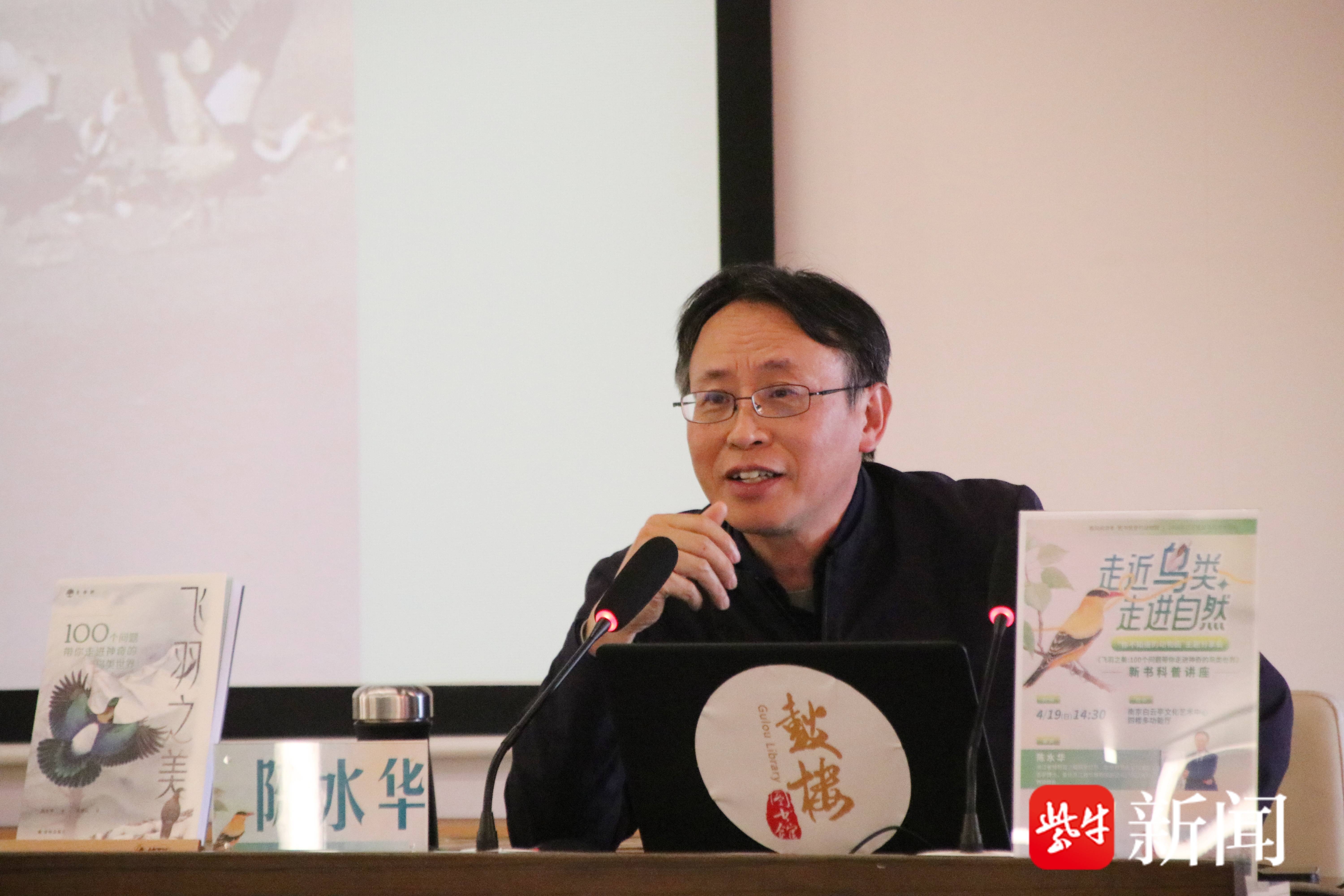在世界读书日和江苏省爱鸟周即将到来之际,鸟类学博士、原浙江省博物馆馆长陈水华受南京市鼓楼区图书馆、译林出版社邀请,携新书《飞羽之美:100个问题带你走进神奇的鸟类世界》走进“春风阅读季·图书馆里的动物园”,从一个又一个有趣的小问题入手,带着读者们走近鸟类、走进自然。