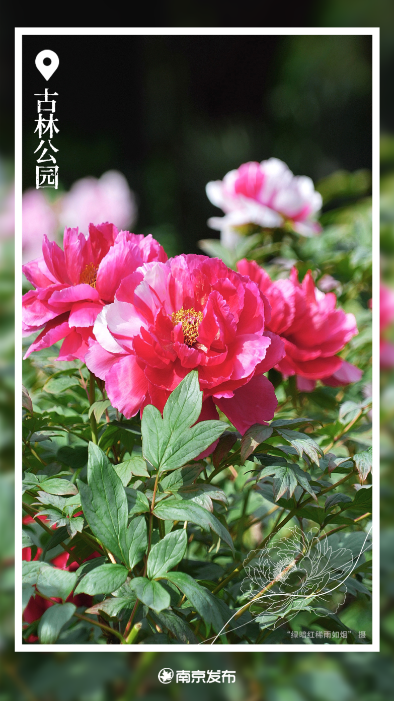 古林公园的牡丹园作为南京特色牡丹专类园,占地约5000平方米,园中超240种、约1500株的名品牡丹目前已进入盛放期。