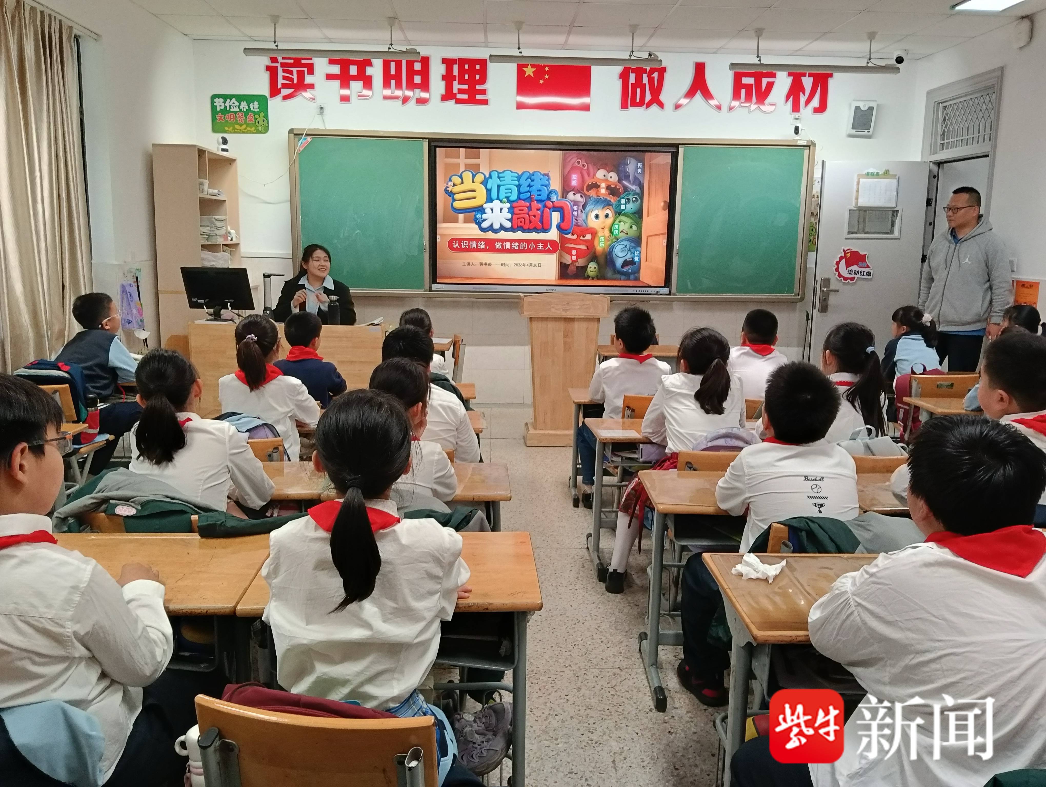 4月20日,琅琊路小学集团渊声巷小学的教室内欢笑声此起彼伏,一场主题为“当情绪来敲门:认识情绪,做情绪的小主人”的心理健康教育讲座正在这里开讲。