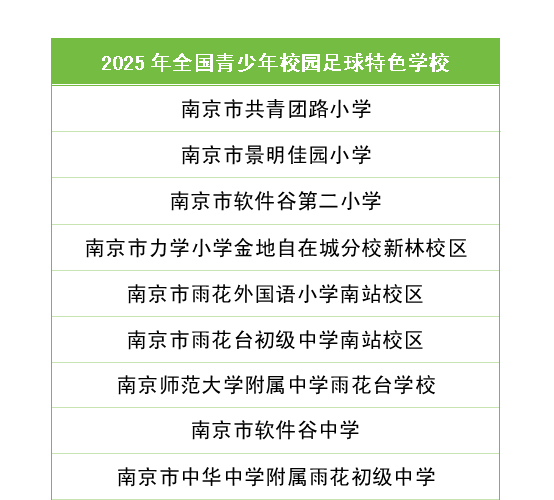 日前,教育部发布了《关于2025年全国青少年校园足球特色学校认定结果的公示》,雨花台区9所学校入选!