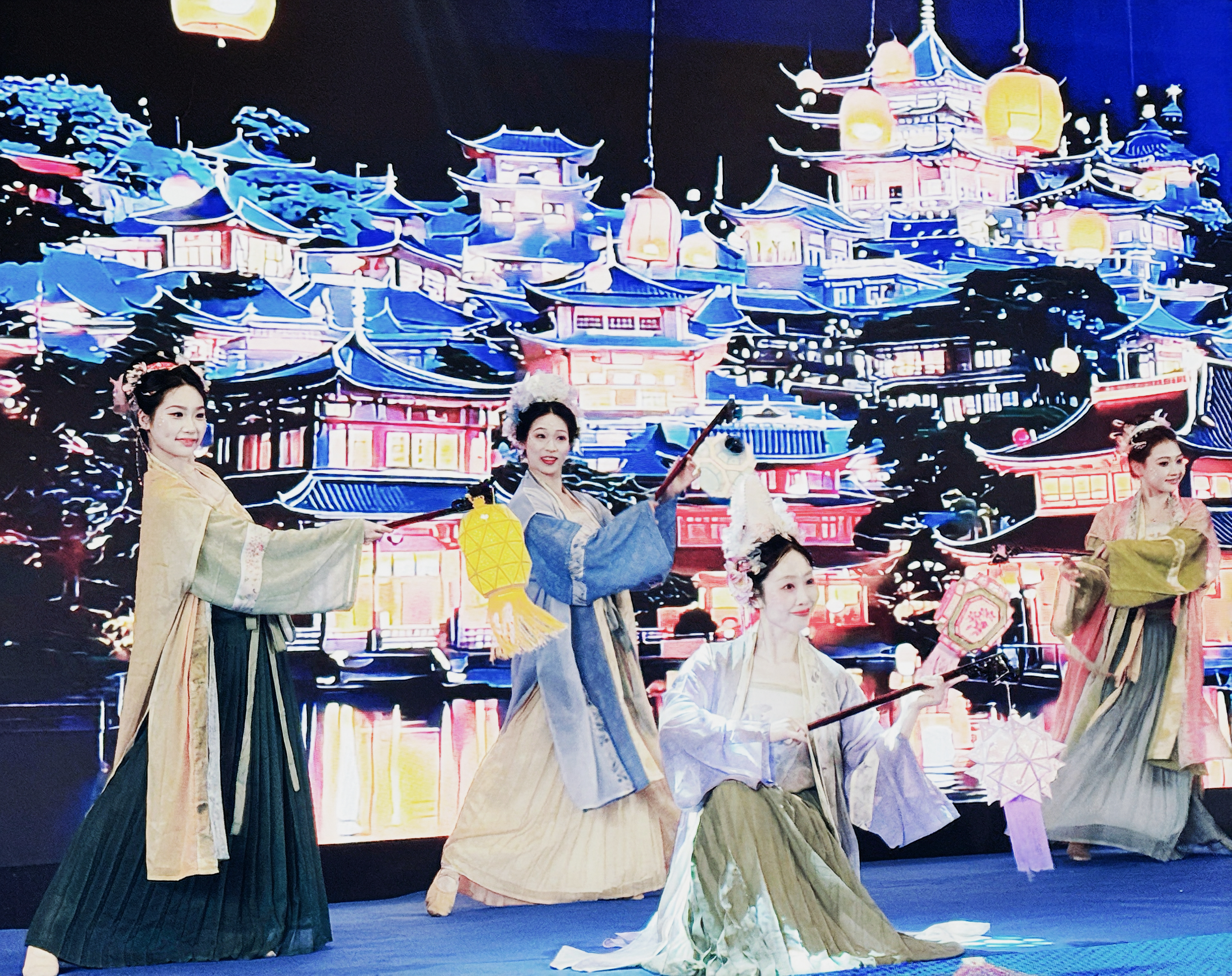 文化赋能更添韵味。水袖舞蹈《山海鲜》将台州山海灵韵与金陵江南温婉融为一体,袖起山海意,袖落一江南。晚宴现场还上演了灯光秀与开场舞,光影流转间尽显双城之美。