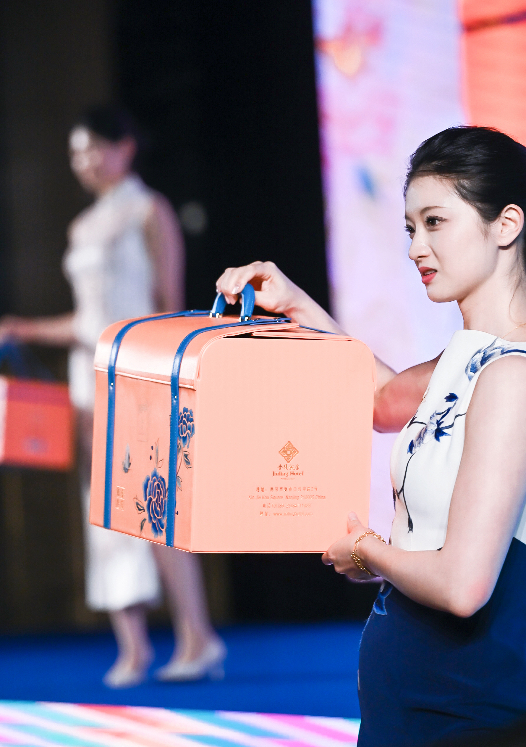当晚最受瞩目的环节之一,是2026金陵梅苑端午定制礼盒的隆重揭幕。由饭店员工担任的金陵形象大使身着传统服饰,以古礼揖让,依次展示雅韵、雅钰、雅馨、雅臻四款节礼。礼盒以中国传统色为设计灵感,纹样取自金陵文化,内含咸甜相宜的端午粽、梅苑古法手工盐水鸭、秘制花雕龙虾及手作萨其马,延续黑珍珠与米其林级别的品质标准。据悉,礼盒已全渠道开售,并推出早鸟专属礼遇。