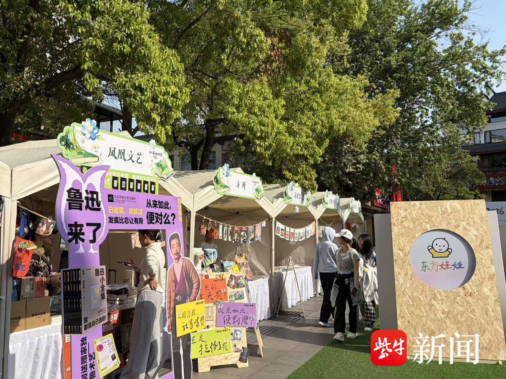 现场文创好物琳琅满目,江苏凤凰文艺出版社设置了鲁迅形象打卡点,并推出多款图书盲盒。《中国国家地理》杂志社带来增刊系列精品;二条商店携原创文创亮相,兼具设计感与烟火气,成为市集热门打卡点;《东方娃娃》杂志社特邀专业老师开展共读绘本、趣味互动活动,陪伴孩子乐享阅读时光。苏超周边潮品同步上线,原创T恤等周边备受青睐,阅读与潮流在此碰撞出新火花。