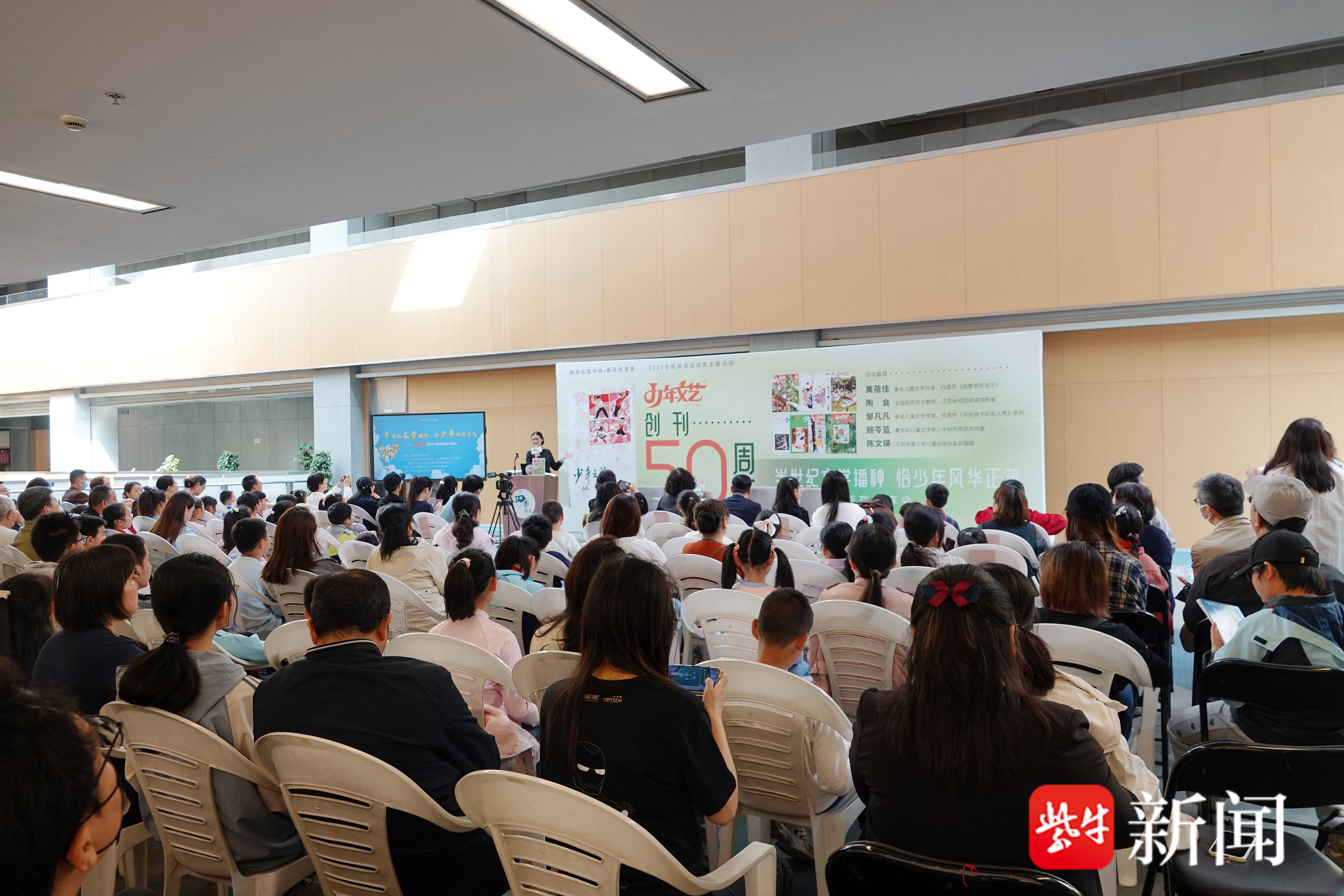 4月26日,《少年文艺》创刊50周年南京分享会,在鼓楼区图书馆举行。作为鼓楼区图书馆春风阅读季•2026全民阅读活动周的重点活动,著名儿童文学作家黄蓓佳,全国百佳语文教师、江苏省校园阅读领航者陶会,儿童文学作家邹凡凡、《少年文艺》主编田俊与大小读者共赴这场文学之约,畅谈文学与成长。