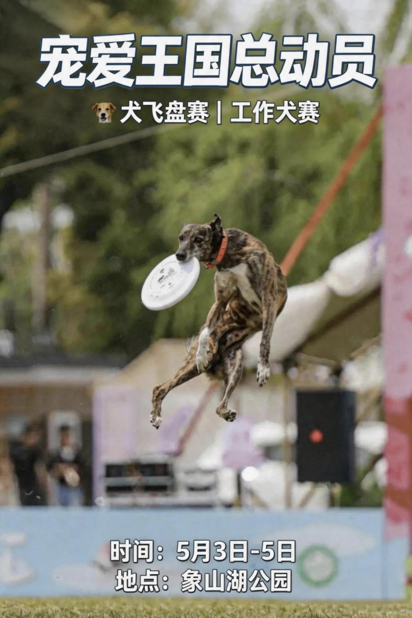 飞盘+奥运会两大顶级赛事——200只赛级犬精彩开赛。5月3日—5月4日,新一届宠爱王国CKUWDC犬飞盘赛,看70只毛孩子腾空接盘,上演速度与激情的空中对决。5月5日新一届宠爱王国CKUWDC工作犬赛IGP,40只精英工作犬同台竞技,第一视角感受全球热门工作犬的竞技姿态。