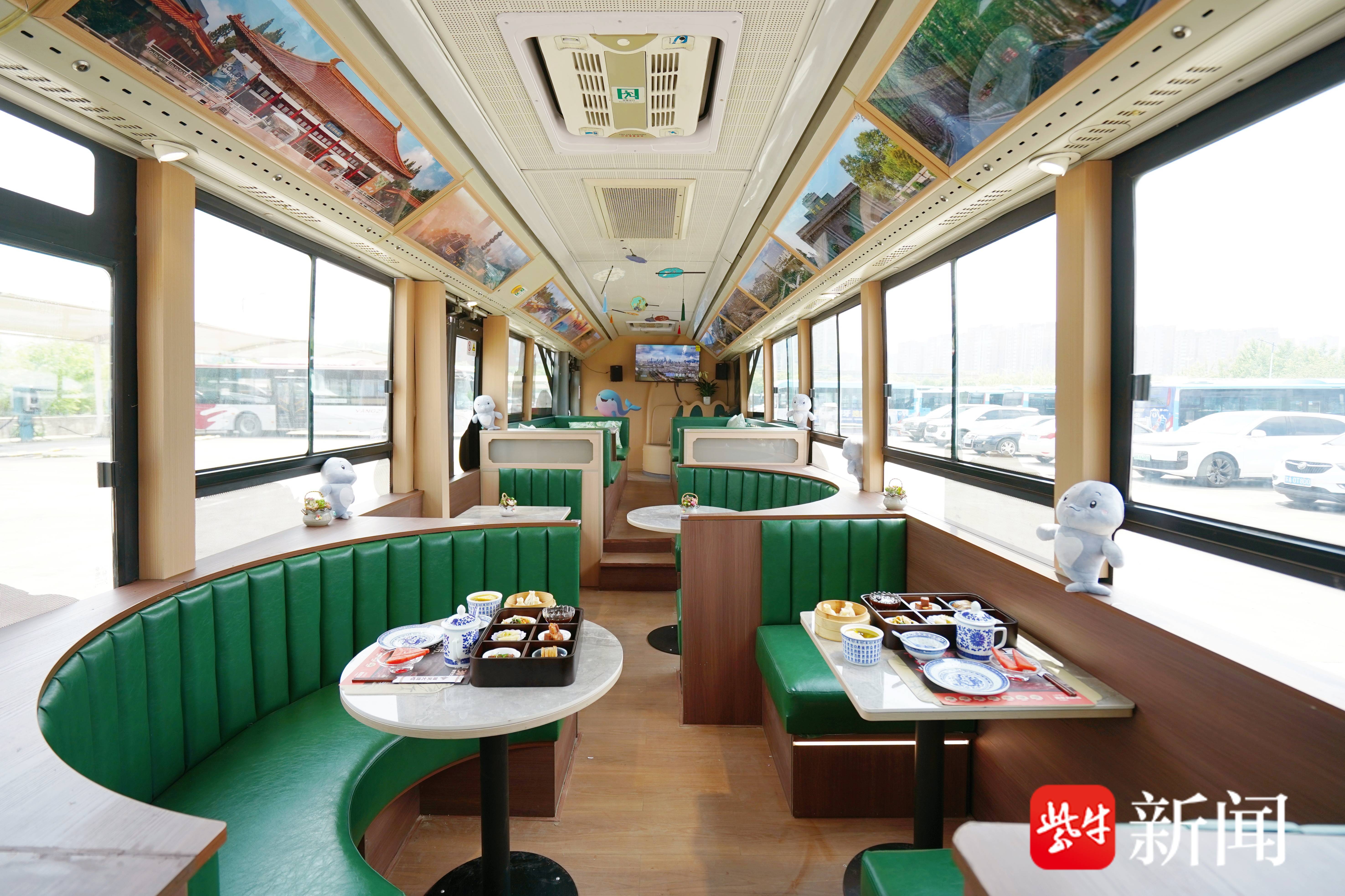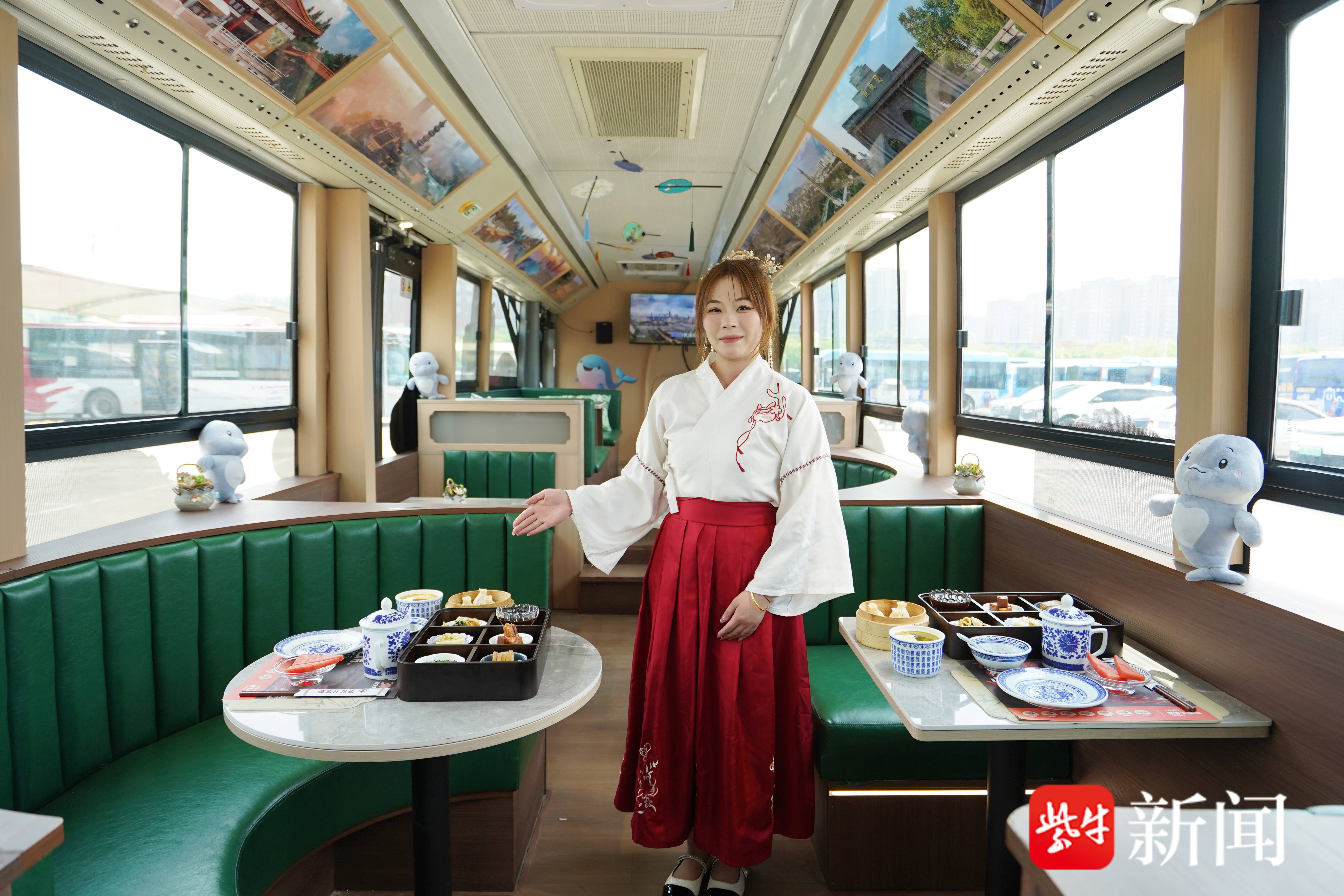 整车承袭雅致古风,车身绘就金陵特色美食,一眼尽揽老南京烟火气韵。特别是,车身近14米,超大空间宽阔舒适,带来自在从容的出行享受。车厢内以团扇映壁、古画缀景,特设舒适卡座,将乘车、用餐、观光融为一体。在城市穿梭间,不止于出行,如同步入一座移动的文化客厅,于细微处感知六朝古都的温润与雅致。