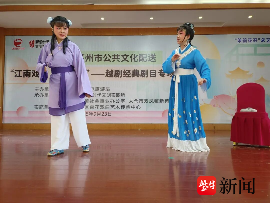 秋意渐浓,丝竹悠扬。近日,苏州市公共文化配送“江南戏韵 经典流芳”越剧经典剧目专场演出在太仓市双凤镇新苑社区精彩上演。本次演出作为江苏省“茉莉花开”文艺直通车行动走入双凤镇的第一站,将高雅艺术的醇美滋味直接送达居民家门口,为社区居民带来了一场沉浸式的视听盛宴。