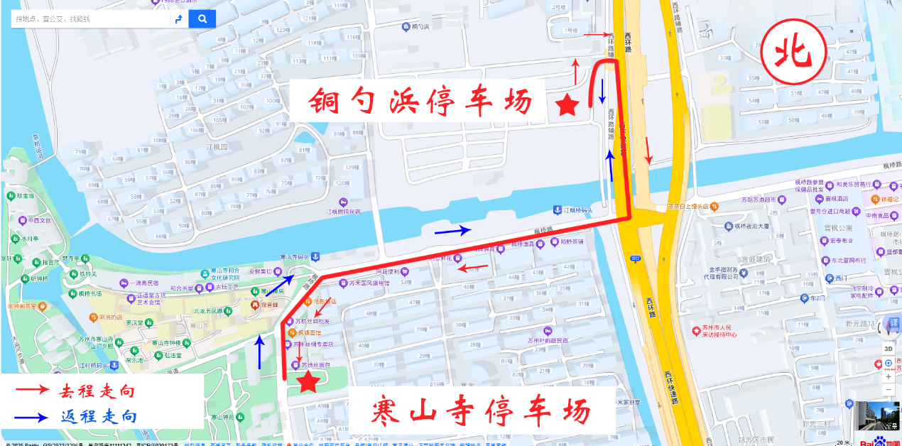 定制(铜勺浜停车场-寒山寺停车场)线路走向示意图