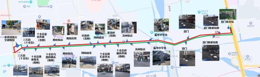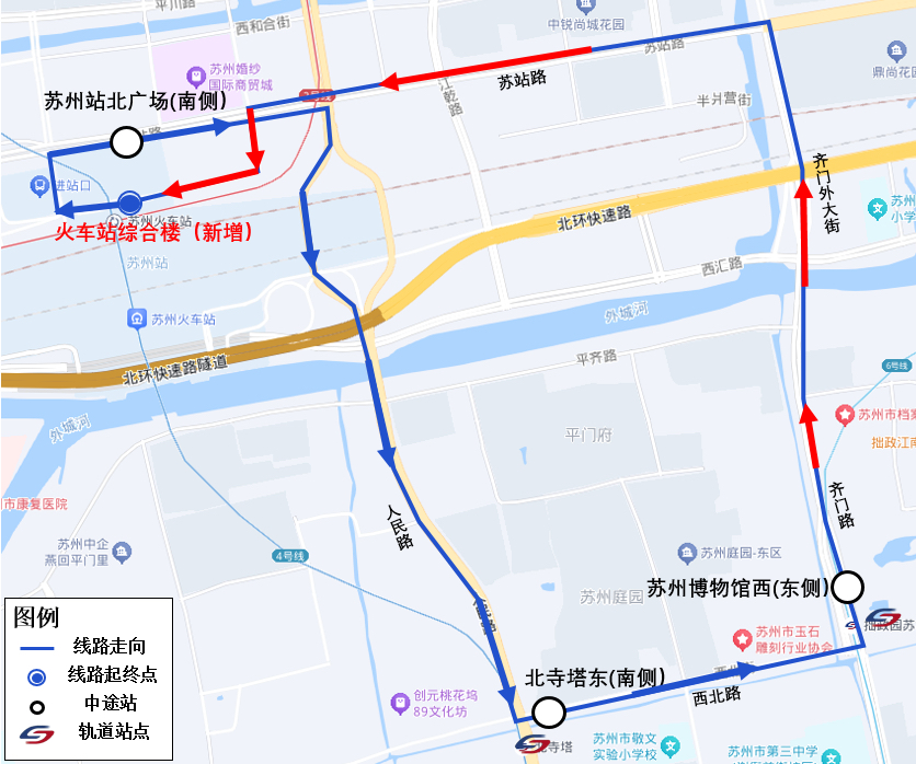 定制(火车站综合楼—苏州博物馆)线路走向示意图