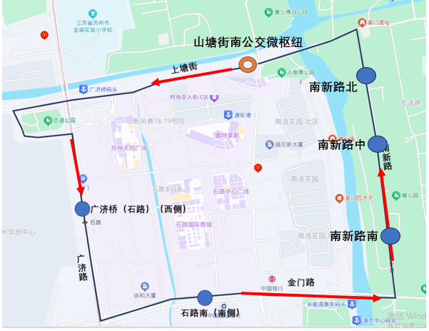 绿色出行达人可乘坐地铁2号线“石路”站9号口出,快速换乘9020路。国庆前夕,9020路新增“南新路北”“南新路中”“南新路南”三个站点,高效串联山塘街、阊门、石路、南浩街等景区和美食网红点,逛吃更方便。