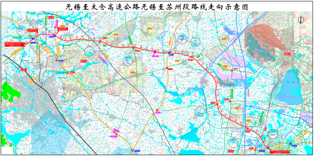 作为江苏省高速公路网规划“十横”重要组成,锡太高速公路起自与沪蓉高速交叉处的无锡北枢纽,接已建成的锡宜高速公路,向东经无锡惠山新城、锡北、东港和羊尖,跨越望虞河后,向东南经苏州辛庄和阳澄湖西,止于苏台高速交叉处的湘城西枢纽。