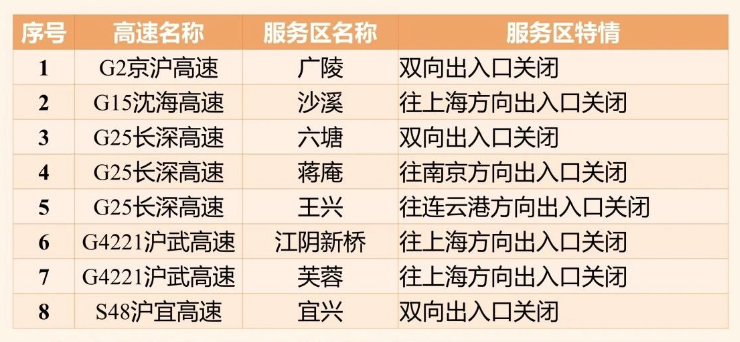 国庆(中秋)期间,共有8个高速公路服务区存在因施工关闭等特情,请提前做好出行安排!