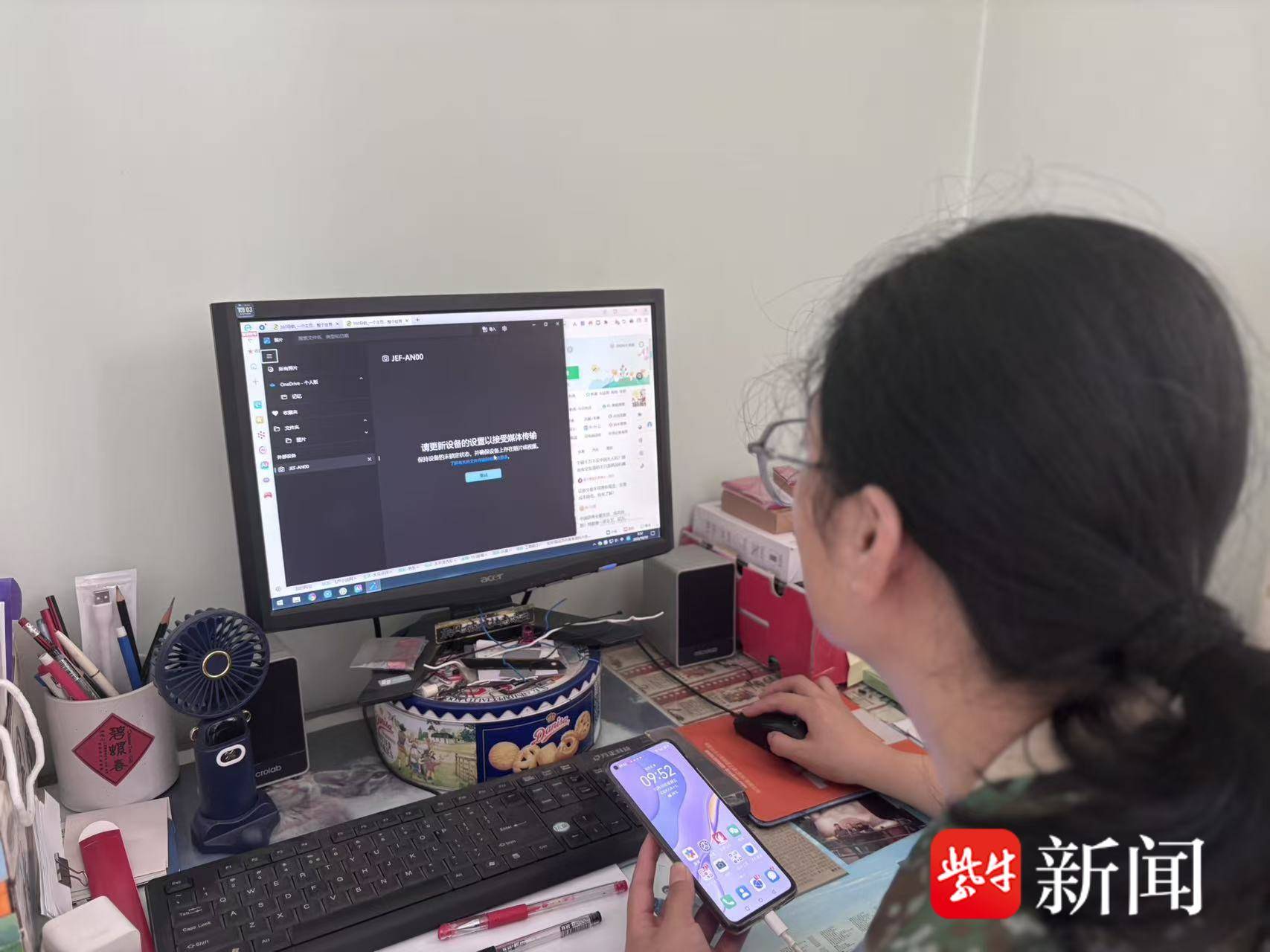 收到求助信息后,社工史亚萍立即和同事一起,赶往王老伯家中。她先详细询问了王老伯手机更新前后的操作情况,随后逐一检查了手机、电脑及数据线是否正常。排查发现,手机系统更新后,USB连接模式默认设置为“仅充电”,且隐藏了开发者选项中的调试功能,导致电脑无法识别设备。找到问题根源后,史亚萍先是更新了手机助手APP,接着在手机设置中开启开发者模式,最终将连接模式切换为“传输文件”。 当电脑屏幕成功显示出手机文件夹时,王老伯脸上露出欣慰的笑容,连连道谢。最后,小史还一边操作一边指导王老伯亲自重复连接步骤,确保他能够独立掌握,叮嘱他再遇到问题可以微信上随时联系。