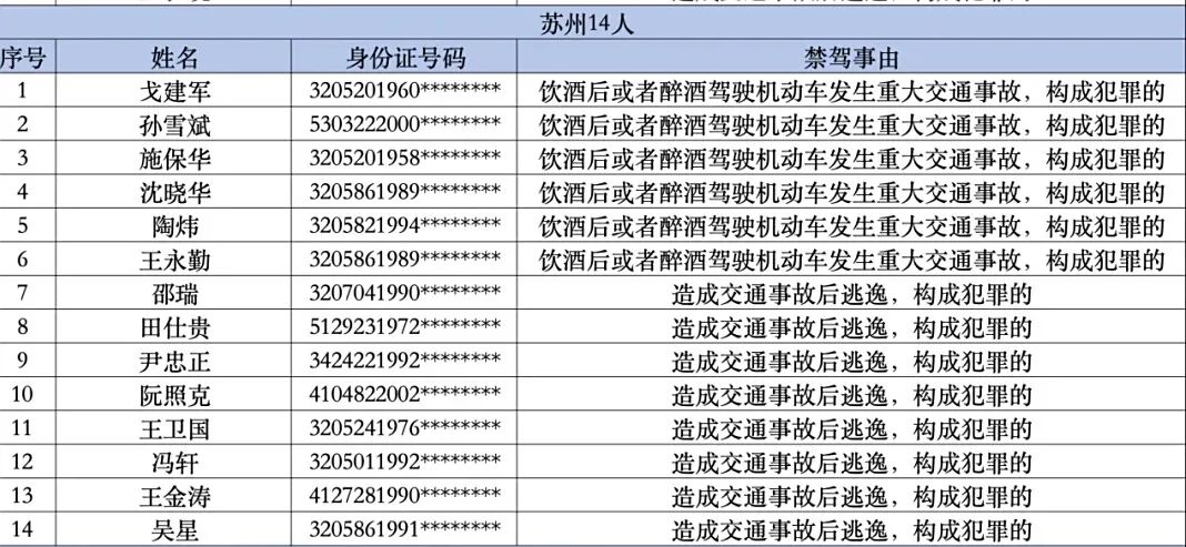 2025年9月,江苏省共计67人被依法吊销机动车驾驶证,且终生不得重新申领,其中苏州市共有14人被终生禁驾。