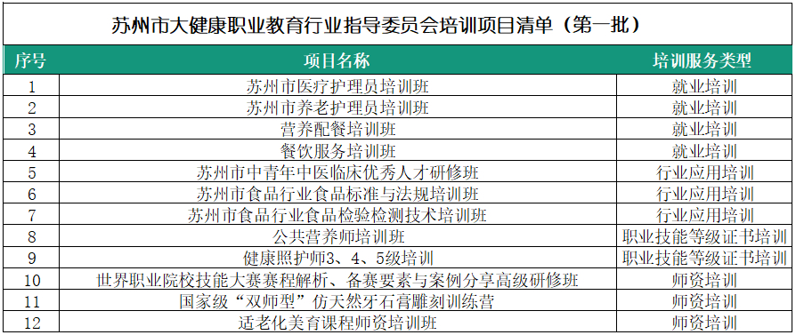 作为链接大健康行业产业与职业教育的专家组织和重要平台,大健康职业教育行指委积极与各类优质产教融合资源合作,形成更大的产业和教育服务合力。大健康职业教育行指委与苏州智慧医养市域产教联合体暨苏适颐养协同育人平台、江苏生物医药产业学院签署联建协议,面向社会发布了首批12项大健康领域培训服务清单。