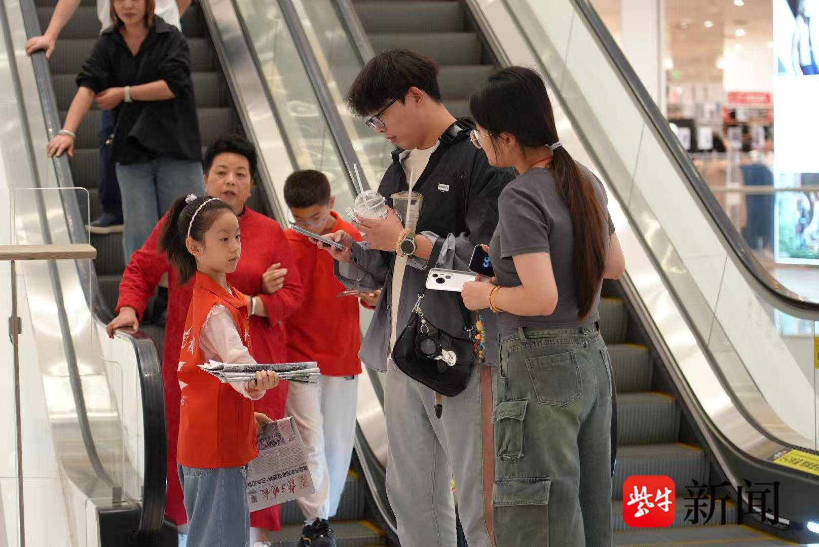 活动中,来自苏州市东中市实验小学校二(2)班的窦义淞一点儿不怯场。初次尝试叫卖,他没有急匆匆穿梭在商场间,反而找到了属于自己的“策略”。扬子晚报/紫牛新闻记者看到,每当有市民从扶梯上下来,他便立刻挺直小身板,带着清亮的声音主动上前,一边递出报纸,一边清晰地向市民说明卖报的意义。从耐心等待合适的时机,到一次次从容开口介绍,窦义淞不仅用行动证明了自己的表达勇气,更在这份“等待与坚持”里,悄悄读懂了“不急躁、敢尝试”的成长意义。“我觉得成功贵在‘坚持’!”窦义淞表示,这次卖报经历,让他更加了解了坚持的意义。