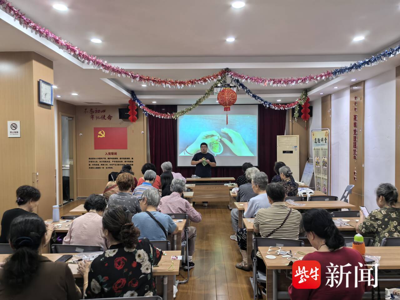 近日,苏州市姑苏区沧浪街道玉兰社区新时代文明实践站联合姑苏区人社局、沧浪街道社区教育中心及社区妇联,开展制作宋锦珍珠风铃的活动,让居民们感受蕴藏在非遗中的典雅韵味。
