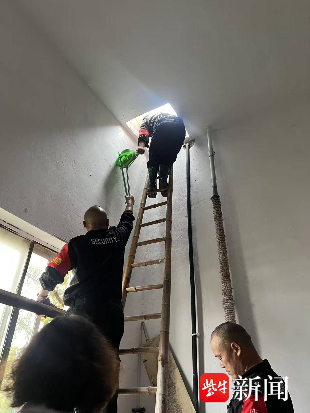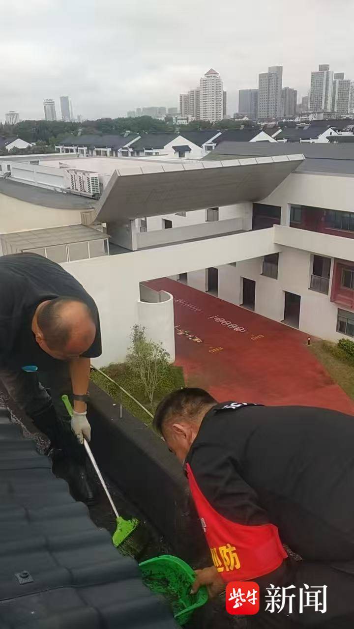 接到反映后,社区工作人员与网格员立即赶赴现场勘查。确认情况后,社区第一时间与新苏附小取得联系,说明原委。学校负责人听闻此事,高度重视,当即表示全力配合解决。次日,学校便派出专业的保洁人员与保安,携带长梯、扫帚、铁锹等工具,与社区网格员组成临时清理队,共同奔赴楼顶作业现场。